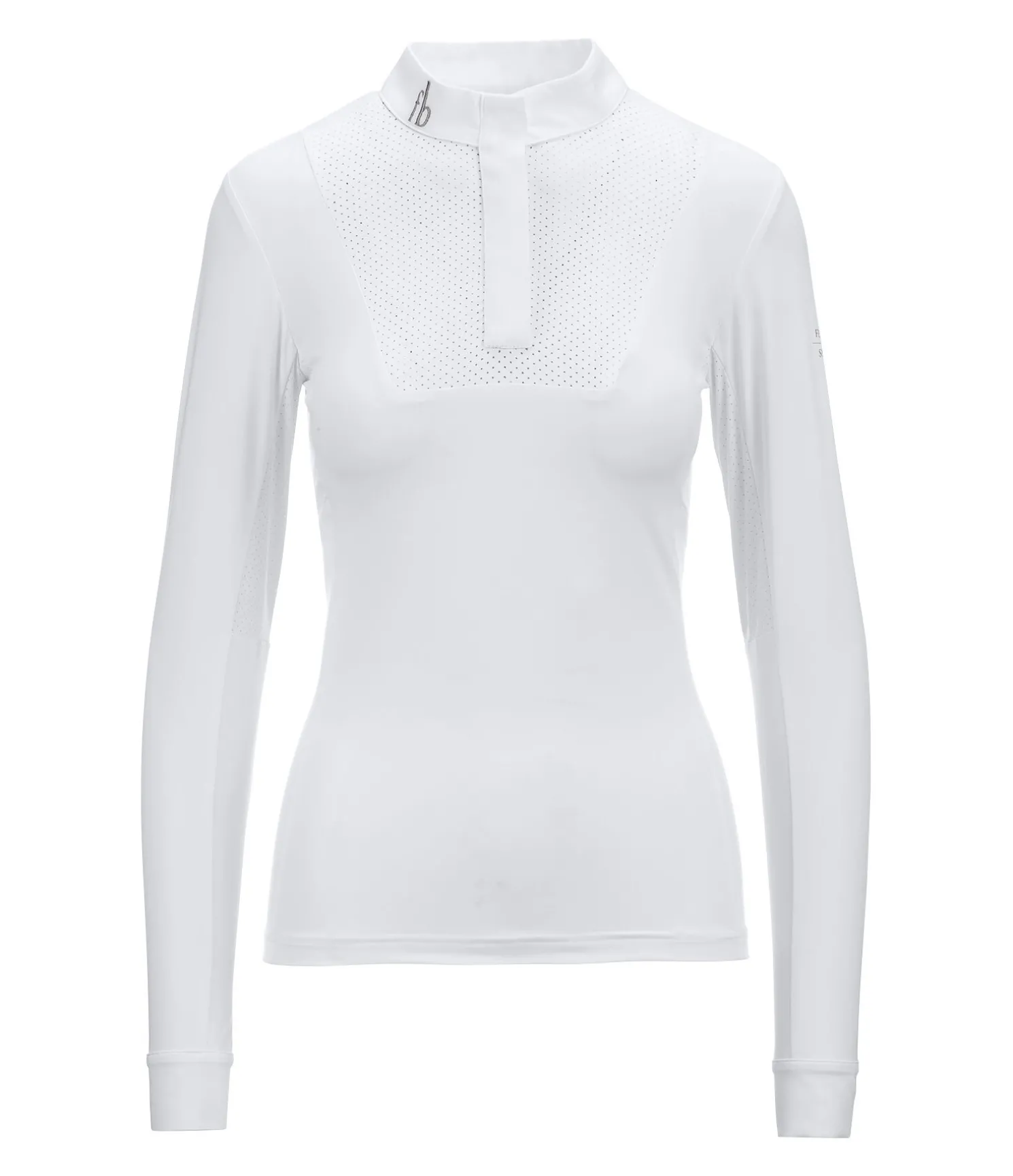Polo de concours à manches longues. Col officier avec fermeture à glissière dissimulée. Matière extensible douce, respirante à séchage rapide. Logo discret brodé sur le col. Empiècements en mesh offrant une respirabilité optimale sur la poitrine et aux aisselles. Boutons-pression en bas des manches. Inscription Felix Bühler sur la manche gauche. 88 % polyester, 12 % élasthanne.