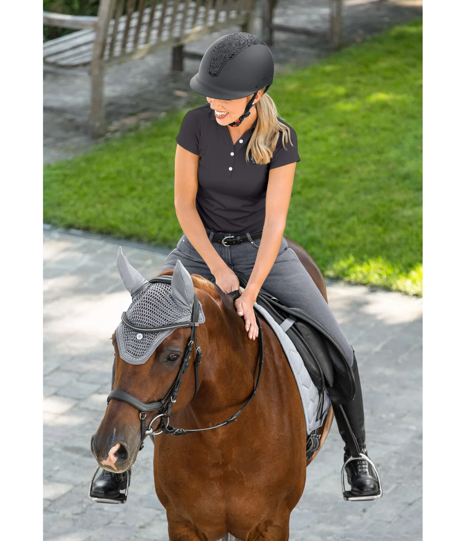 Polo technique à col en V. Matière extensible, respirante et à séchage rapide. Spécialement conçu pour la pratique de l’équitation. Signature Felix Bühler sur la poitrine. 100 % polyester.