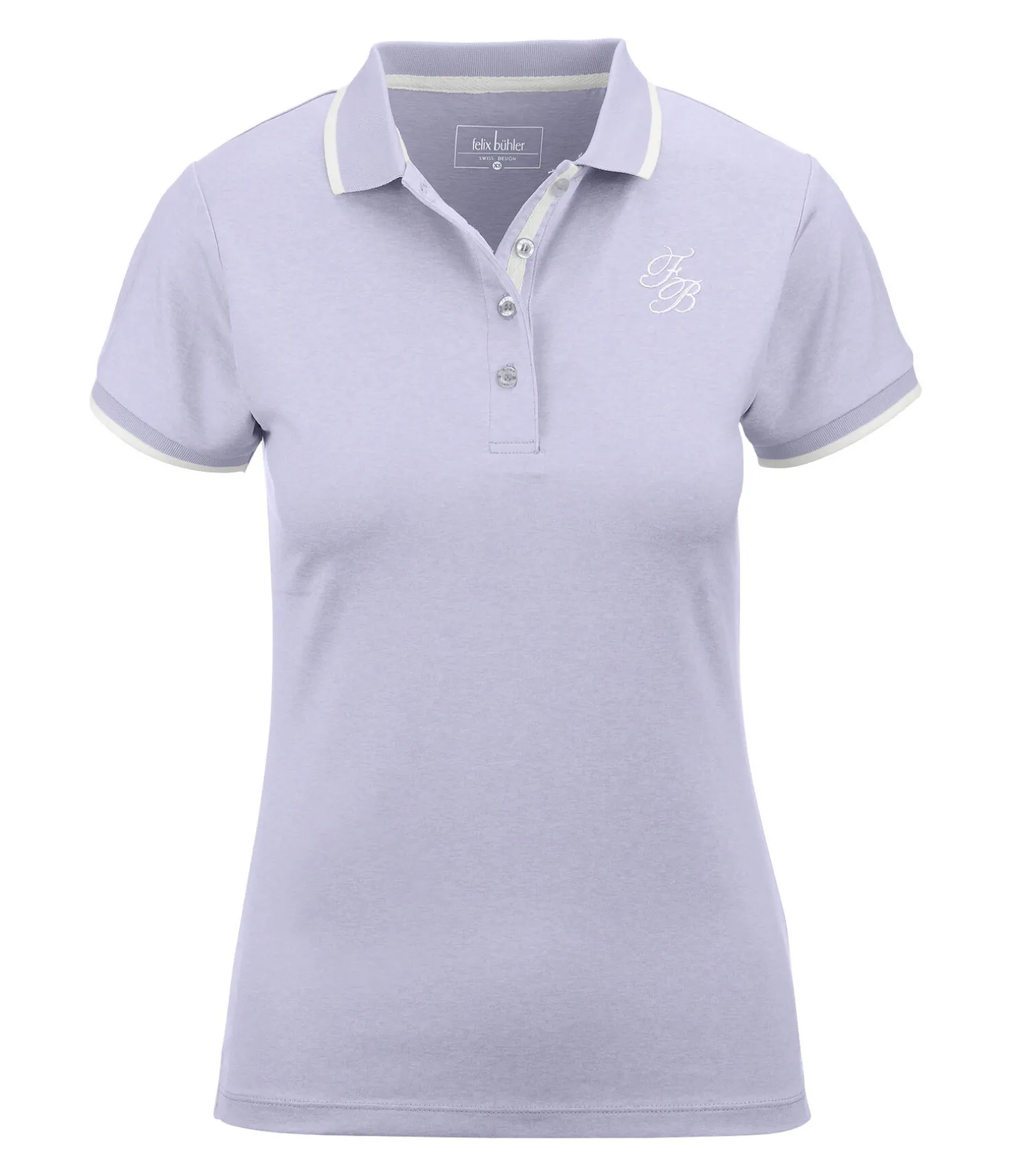 Polo d’équitation technique. Modèle classique à manches courtes en jersey extensible. Aspect chiné. Bord-côte avec liseré de couleur contrastante sur le col et le bas des manches. Patte de boutonnage. Logo brodé Felix Bühler sur la poitrine. Matière respirante à séchage rapide. 92 % polyester, 8 % élasthanne