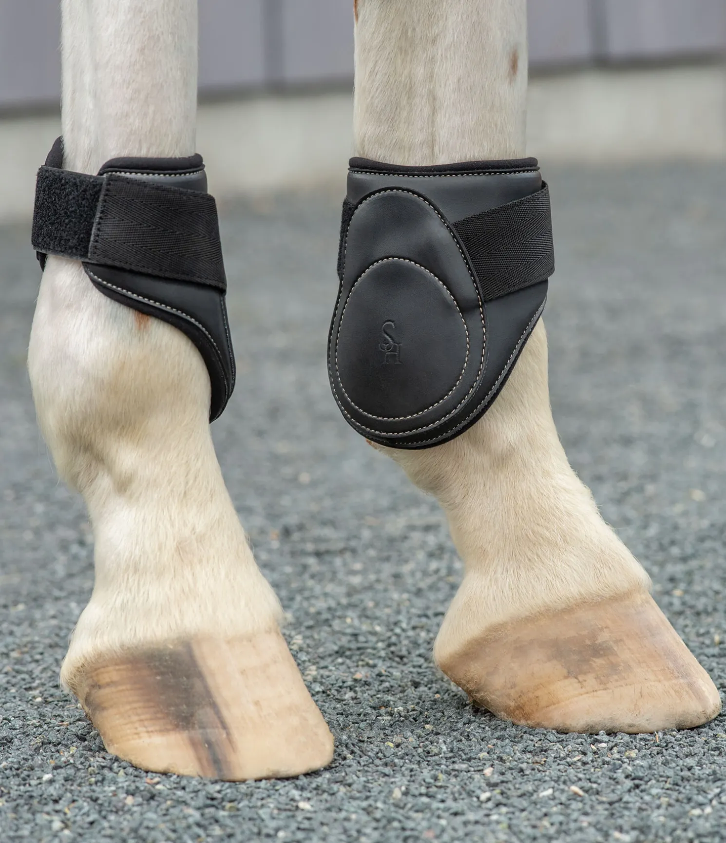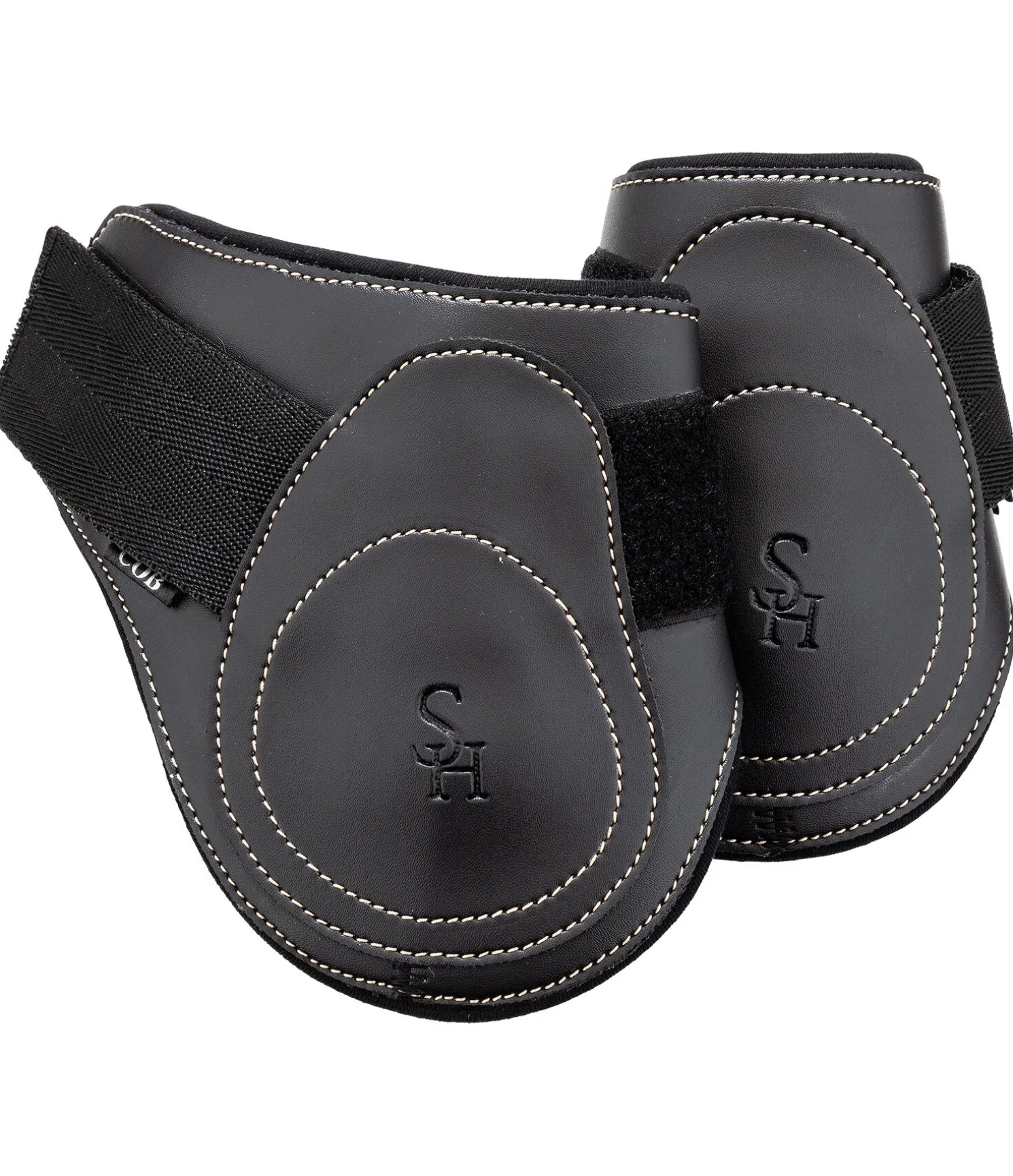 Protège-boulets SHOWMASTER en synthétique résistant ornés de surpiqûres originales. Anatomiques, patte auto-agrippante élastique pour un ajustement optimal. Assortis aux guêtres 530 746.Vendu par paire.