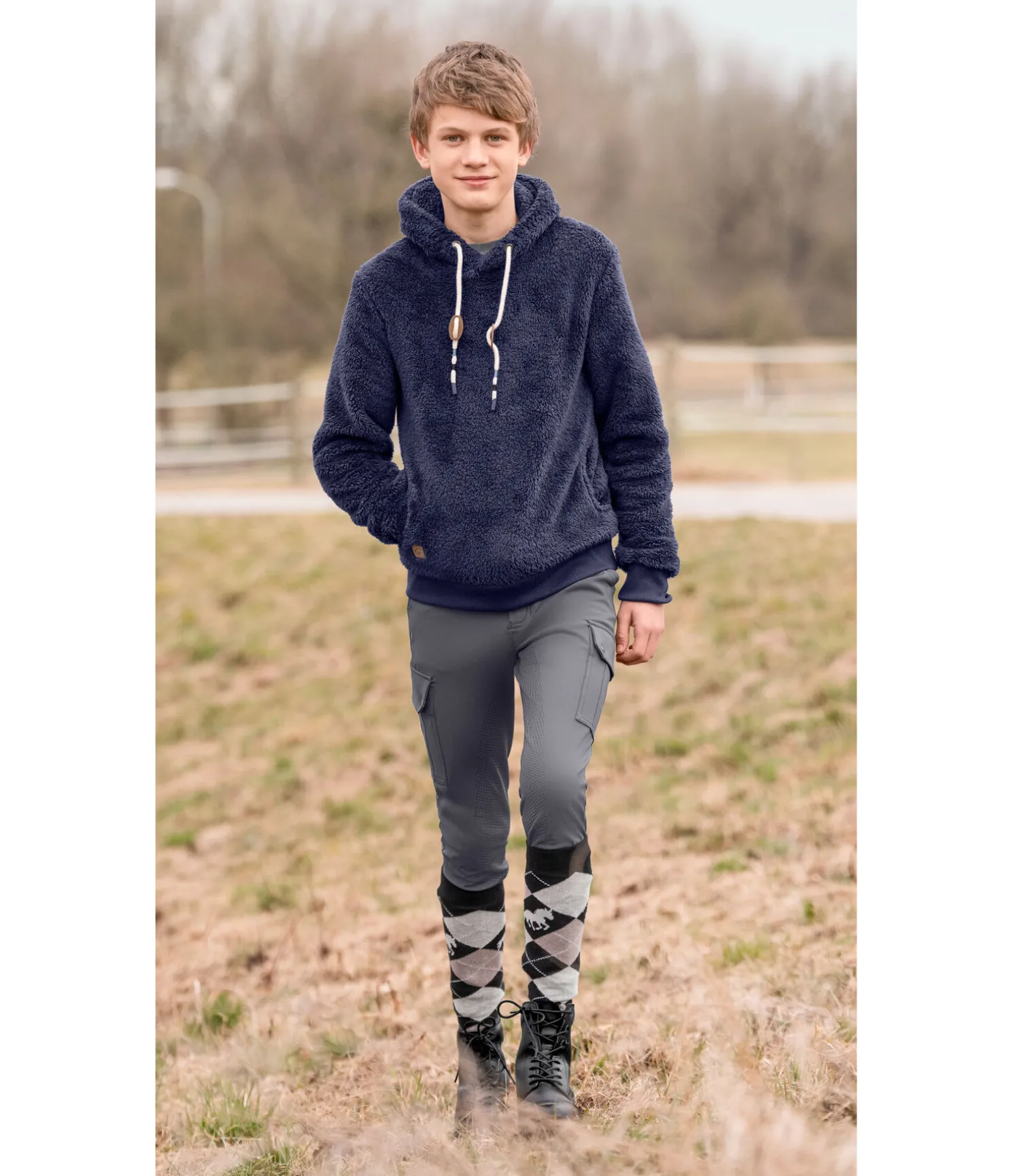 Pull à capuche douillet pout enfant en polaire Teddy douce avec poches devant. Bas des manches et taille en finiton bord-côte, capuche réglable, badge logo STEEDS. 100 % polyester.