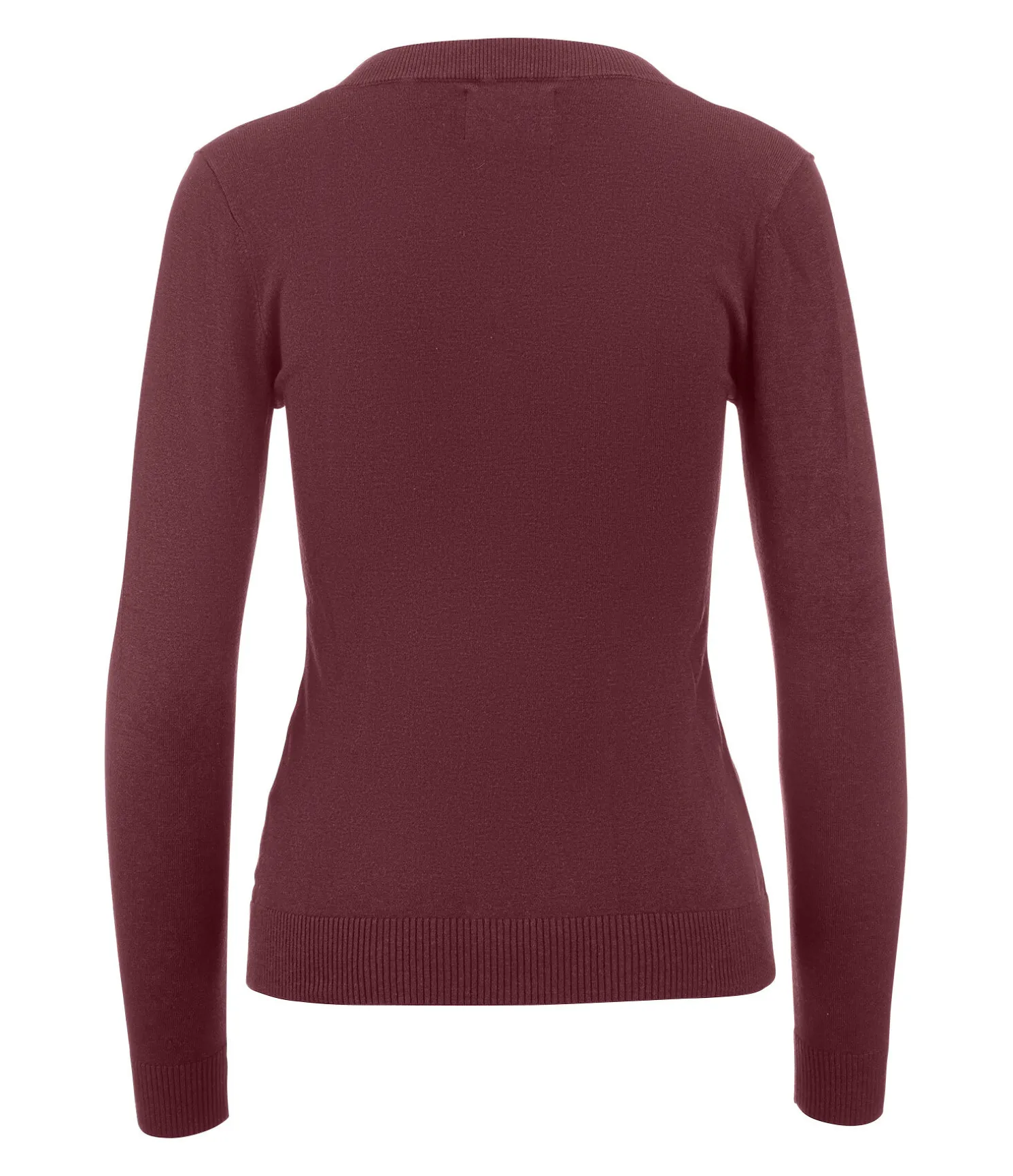 Pull classique avec col en V. Matière douce. Discrète broderie Felix Bühler sur la poitrine. Finition bord-côte à la taille, au col et aux poignets. 80 % viscose, 20 % nylon.