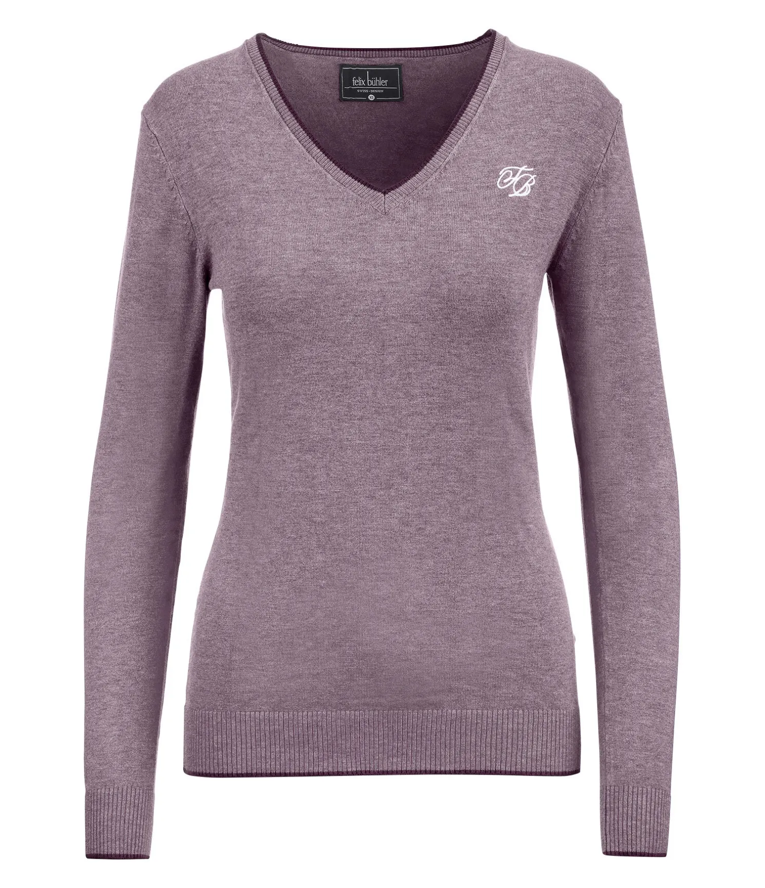 Joli pull-over à col V en maille douce. Logo brodé sur la poitrine. Finition en maille côtelée avec bordure de couleur contrastante sur le col, le bas des manches et l’ourlet. 80 % viscose, 20 % nylon.