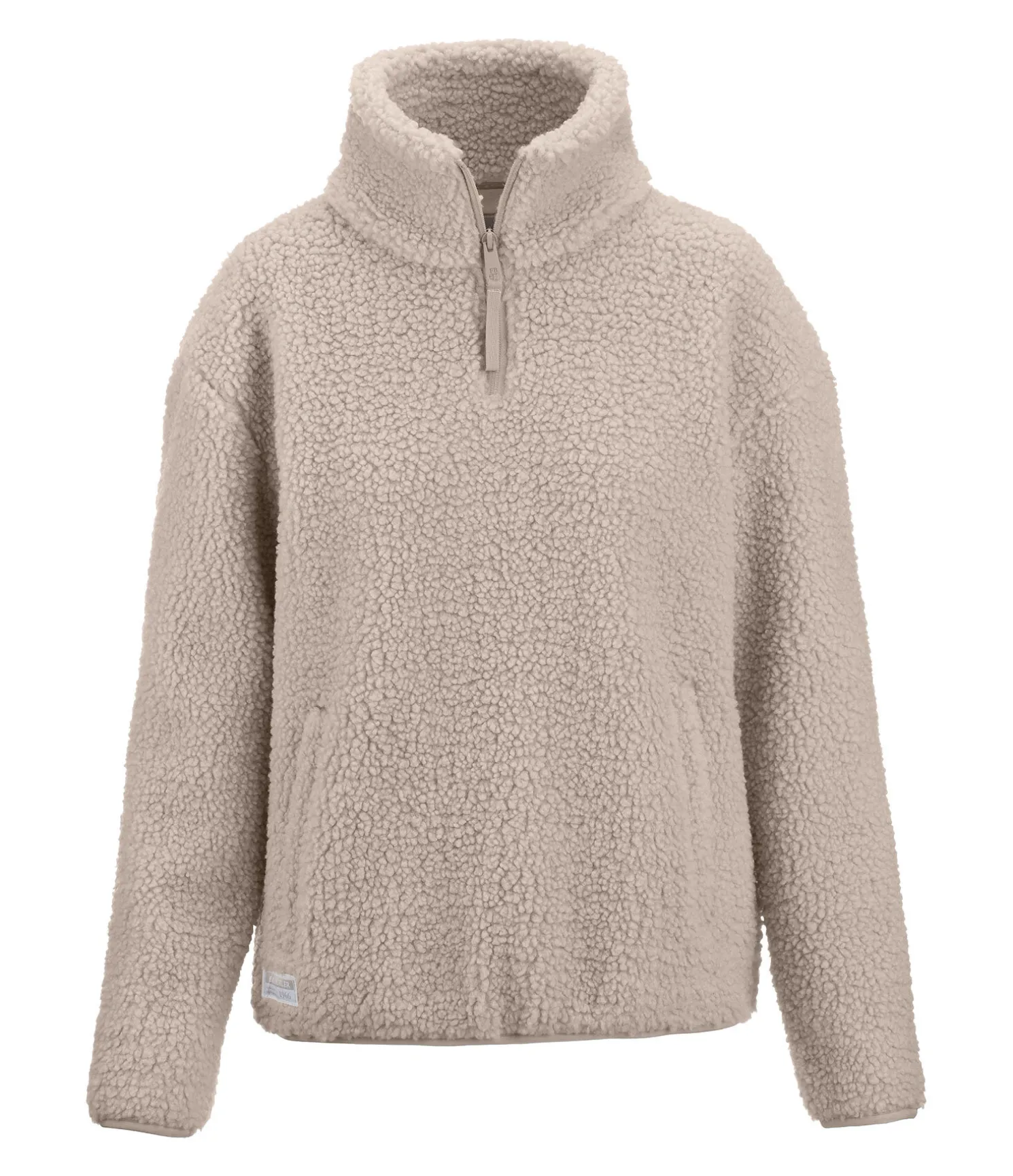 Pull-over doux en sherpa. Col montant zippé. Deux poches latérales doublées en polaire douce. Bord élastiqué en bas des manches et à la taille. Badge en tissu Felix Bühler. 100 % polyester.