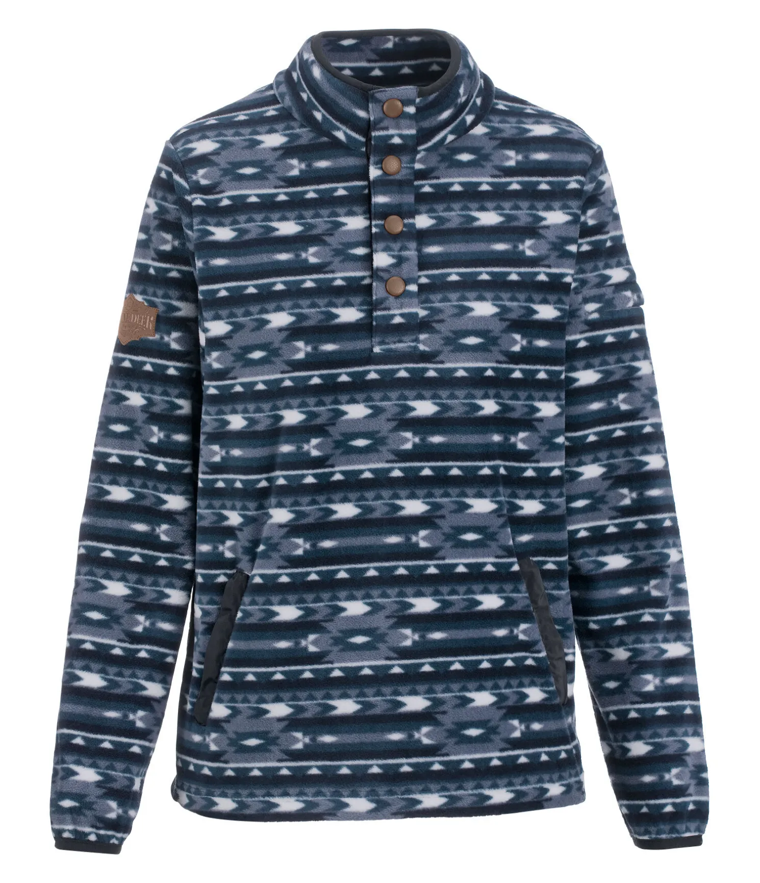 Pull polaire avec imprimé ikat et détails en matière synthétique. Col montant. Poche kangourou zippée. Poche avec fermeture à glissière sur la manche. Ourlet élastiqué. Matière respirante. 100 % polyester.