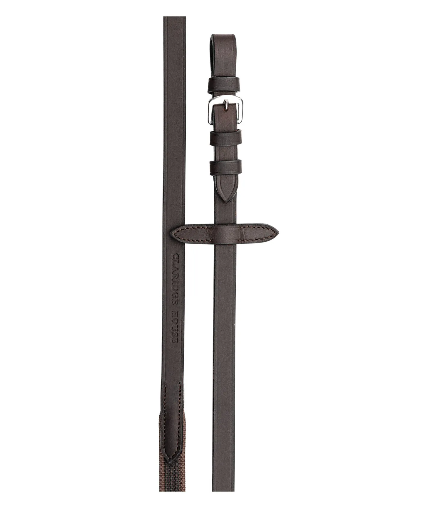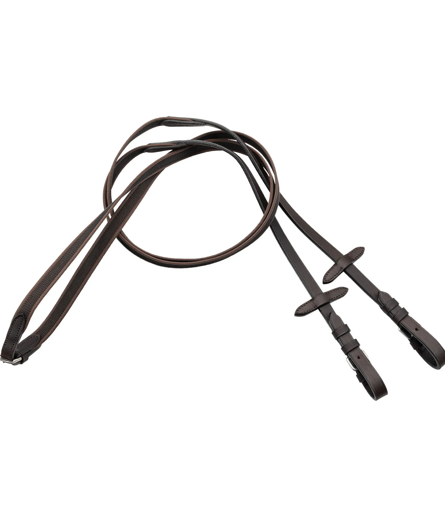 Rênes en cuir véritable agréables en main. Revêtement caoutchouté antidérapant et extrémités en cuir gras particulièrement souple. Arrêtoirs de martingale. Bouclerie argentée. Largeur 1,9 cm, longueur : C (poney) = 280 cm, F (cheval)= 290 cm.