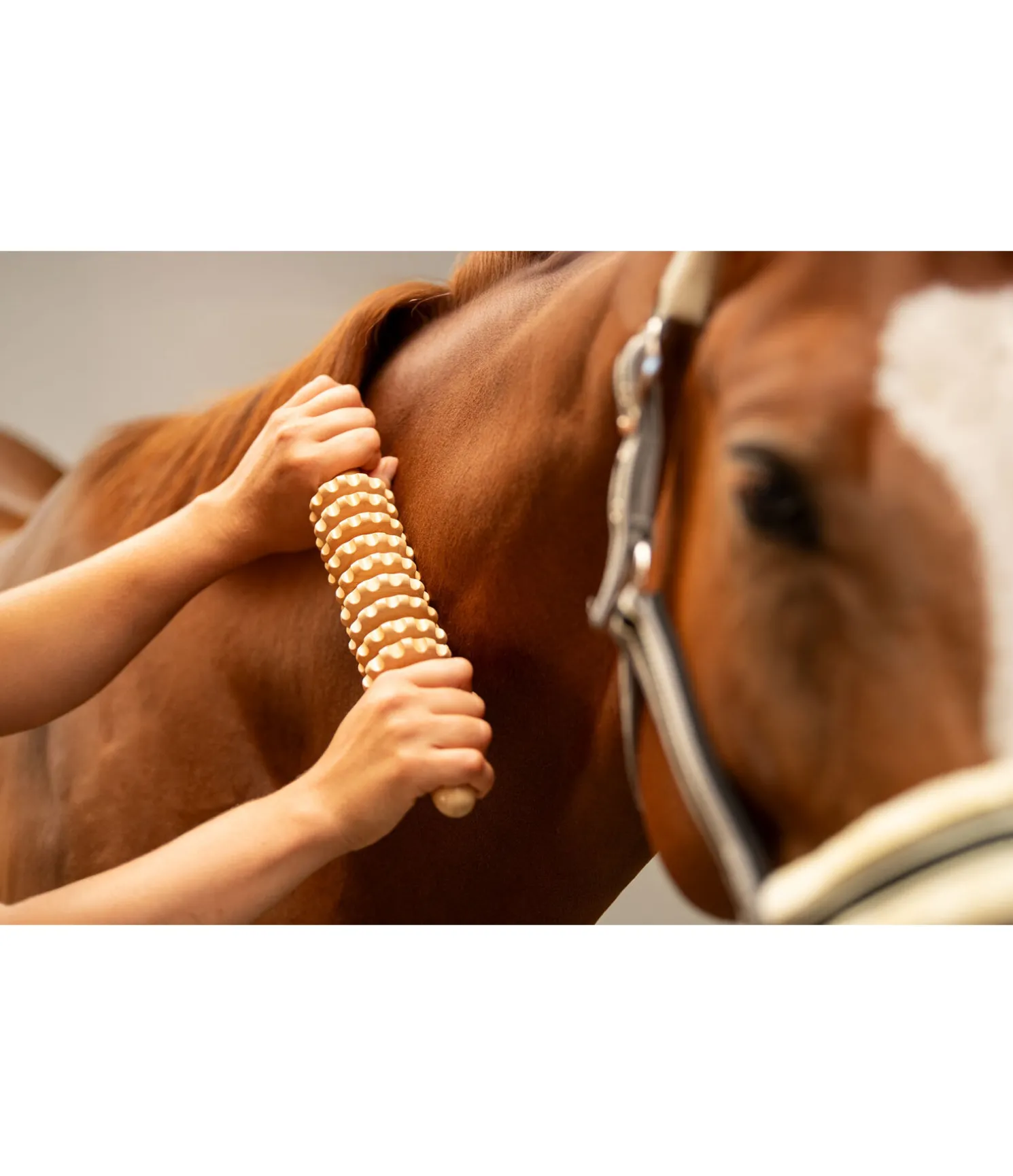 Rouleau de massage permettant de masser efficacement les fascias de ton cheval pour améliorer leur élasticité. Ce massage permet aussi d’apporter à ton cheval détente et bien-être. Ne pas utiliser directement sur les os (par exemple le garrot).