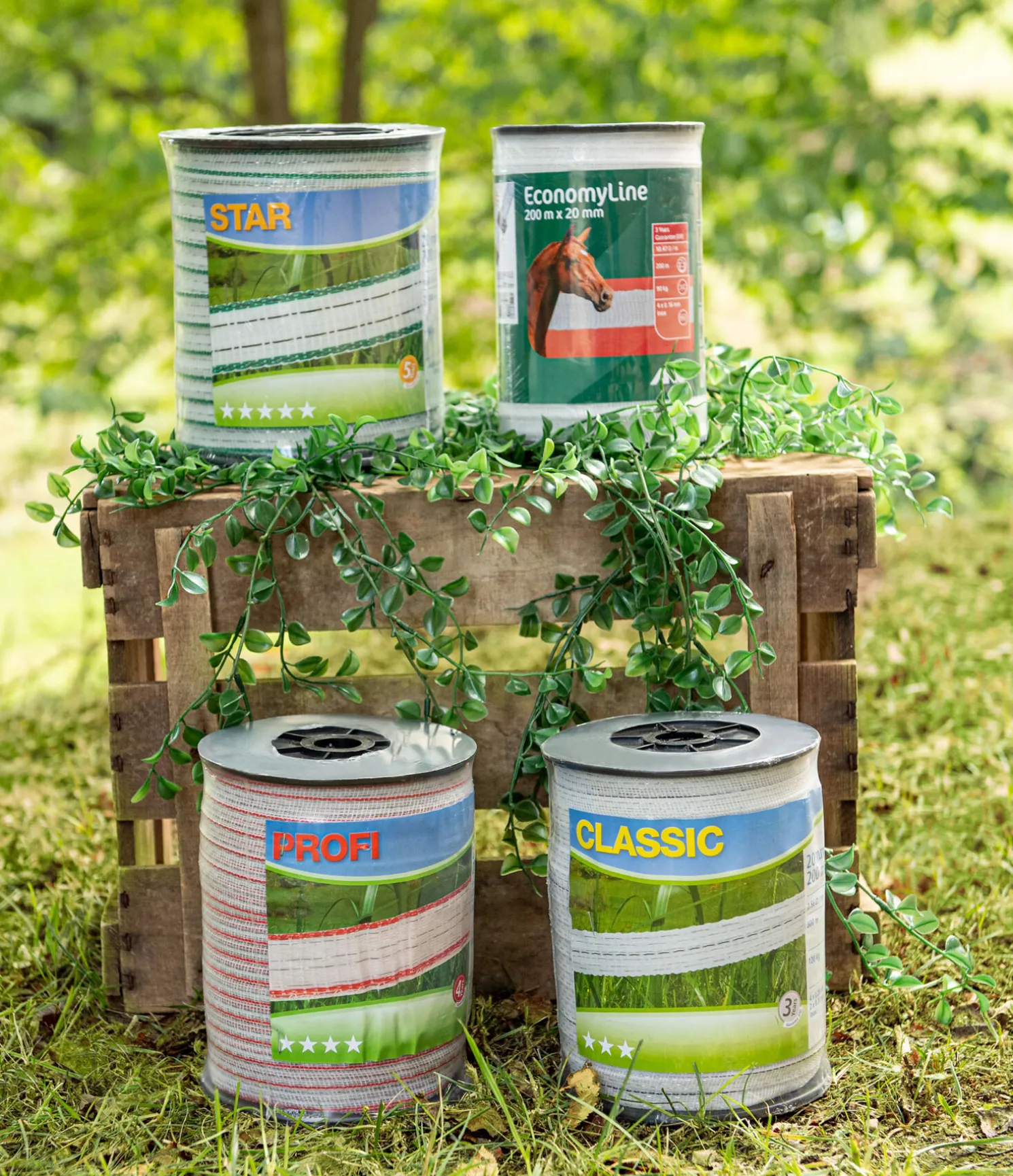 Largeur 20 mm, avec 4 x 0,20 mm + 2 x 0,30 mm conducteurs inox, longueur 200 m. 2,56 ohm/m.