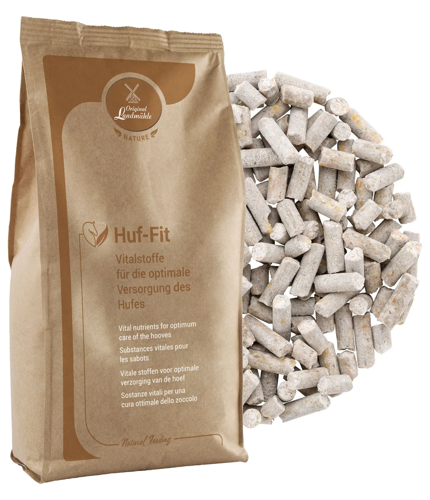 Aliment complémentaire adapté aux besoins spécifiques des chevaux. Contient un complexe de principes actifs permettant de renforcer les sabots. Ce complexe à base de biotine, zinc, cuivre et méthionine apporte à l’organisme les ingrédients indispensables à une corne de qualité. Permet de soutenir et protéger les sabots du cheval. Optimal pour les chevaux ayant des sabots mous ou cassants, ou un tissu conjonctif affaibli. Huf-Fit Original Landmühle est exempt de céréales et de mélasse. Parfait pour valoriser la ration quotidienne. En granulés faciles à donner aux chevaux et généralement mieux acceptés.