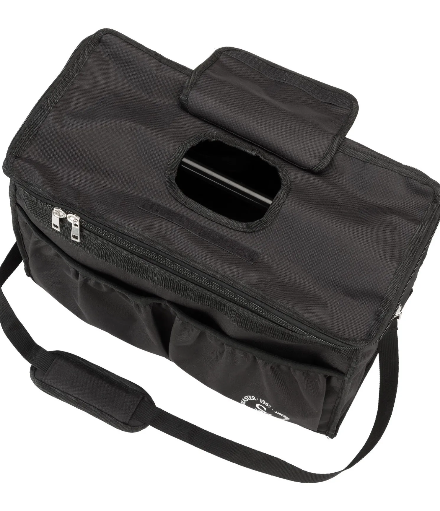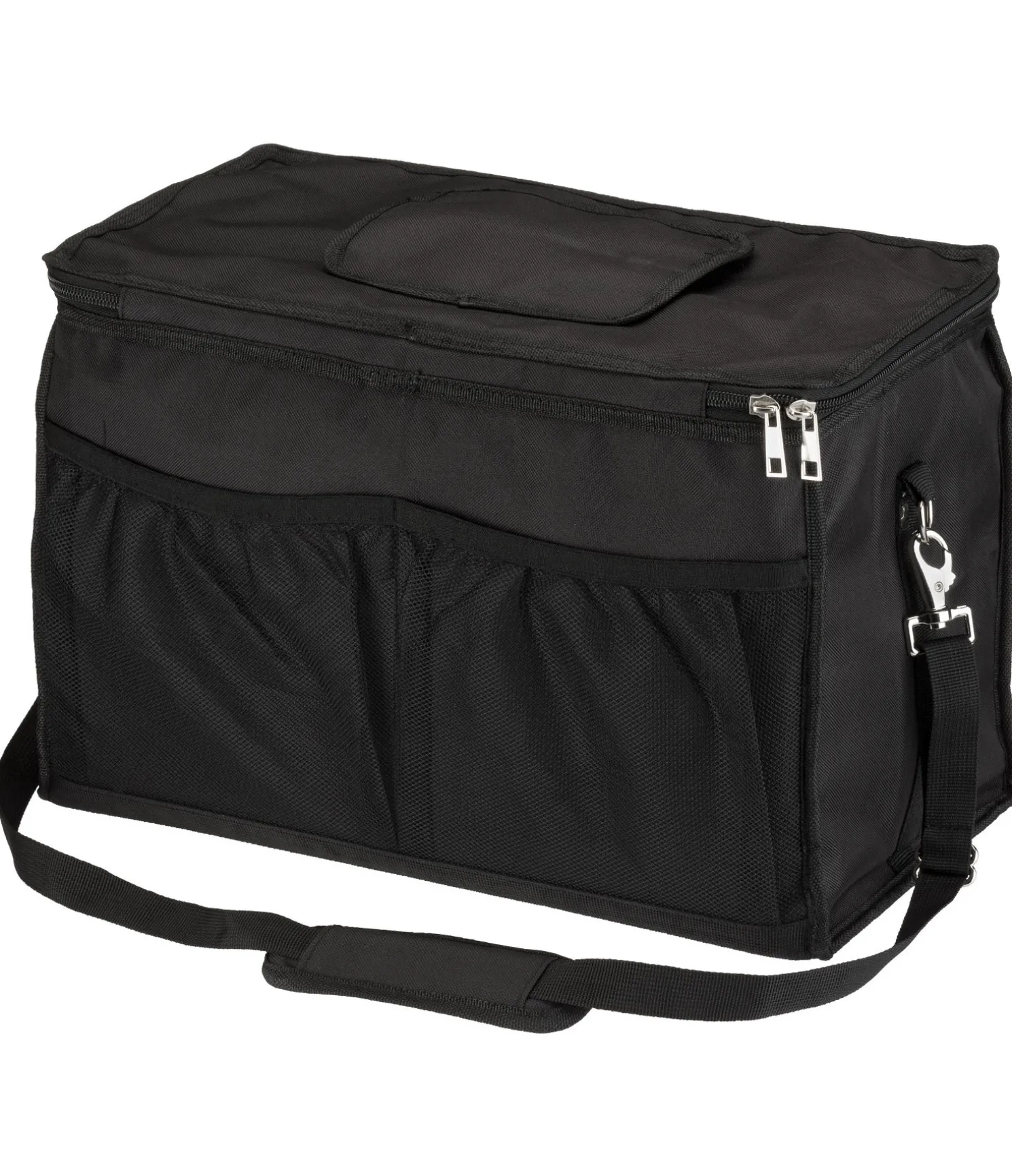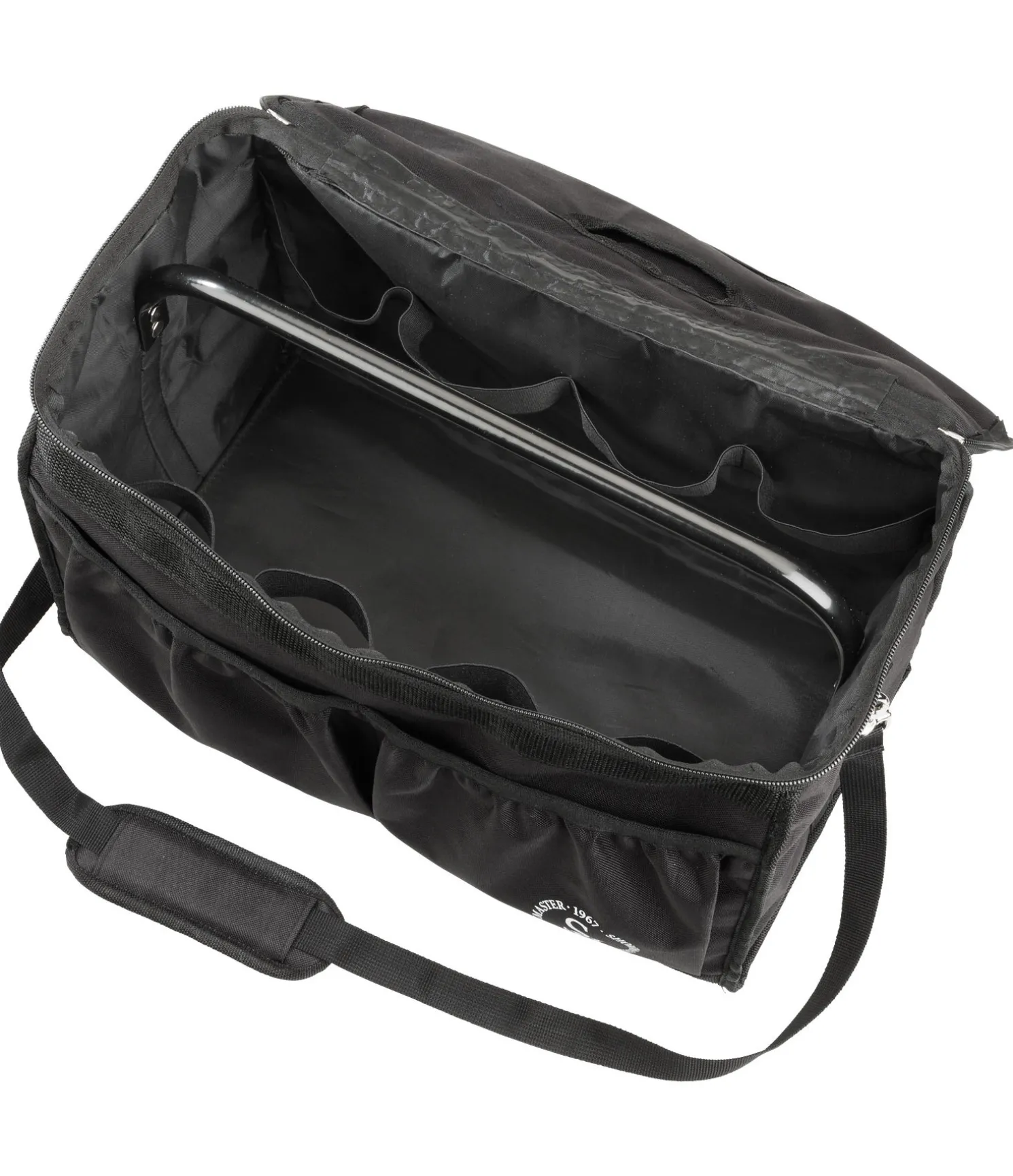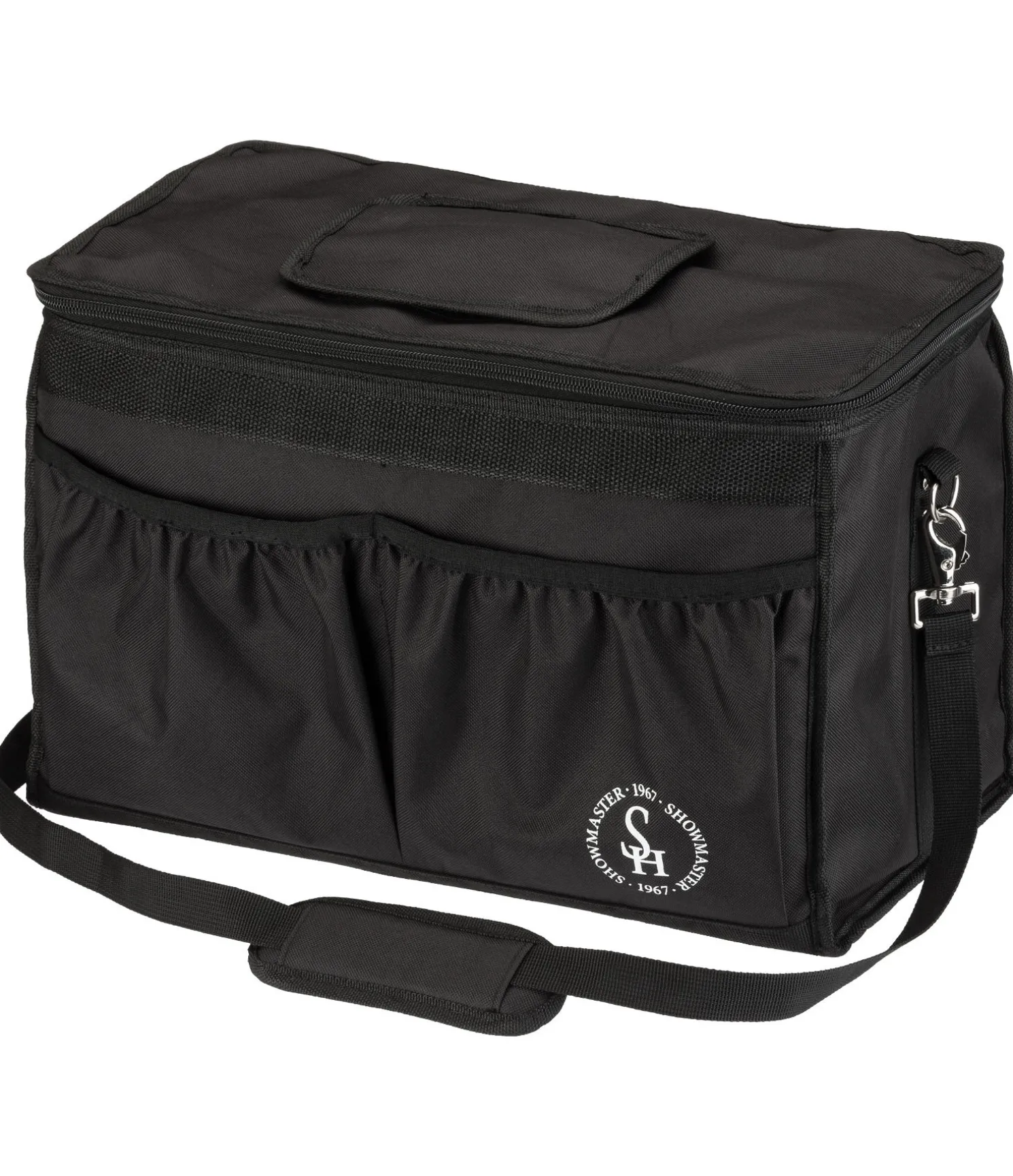 Le sac de pansage SHOWMASTER EasyGo est particulièrement pratique à transporter grâce à la barre métallique intérieure servant de poignée. Un rabat sur le haut du sac permet de l’atteindre facilement, sans laisser pénétrer la saleté. Ce sac possède deux poches et deux filets à l’extérieur ainsi qu’une bandoulière amovible. À l’intérieur, plusieurs élastiques permettent de maintenir les flacons en position verticale, afin d’éviter qu’ils ne se déversent dans le sac. 45 x 30 x 23 cm. 100 % Polyester.