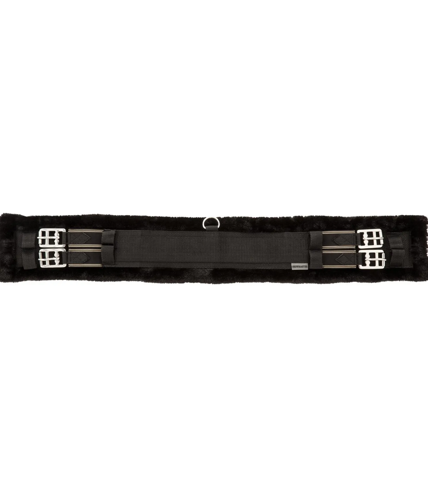 Sangle en nylon résistante à la déchirure avec empiècements élastiques des deux côtés, anneau central en D et boucles à rouleau. Doublure en polaire Teddy extra douce. Largeur 14,5 cm.