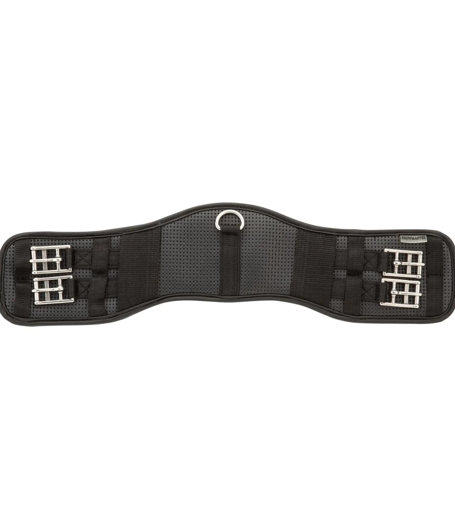 Sangle courte demi-lune anatomique. Doublure en caoutchouc chloroprène. Sa forme arquée la rend idéale pour les poneys ronds avec passage de sangle étroit et empêche la selle de glisser.