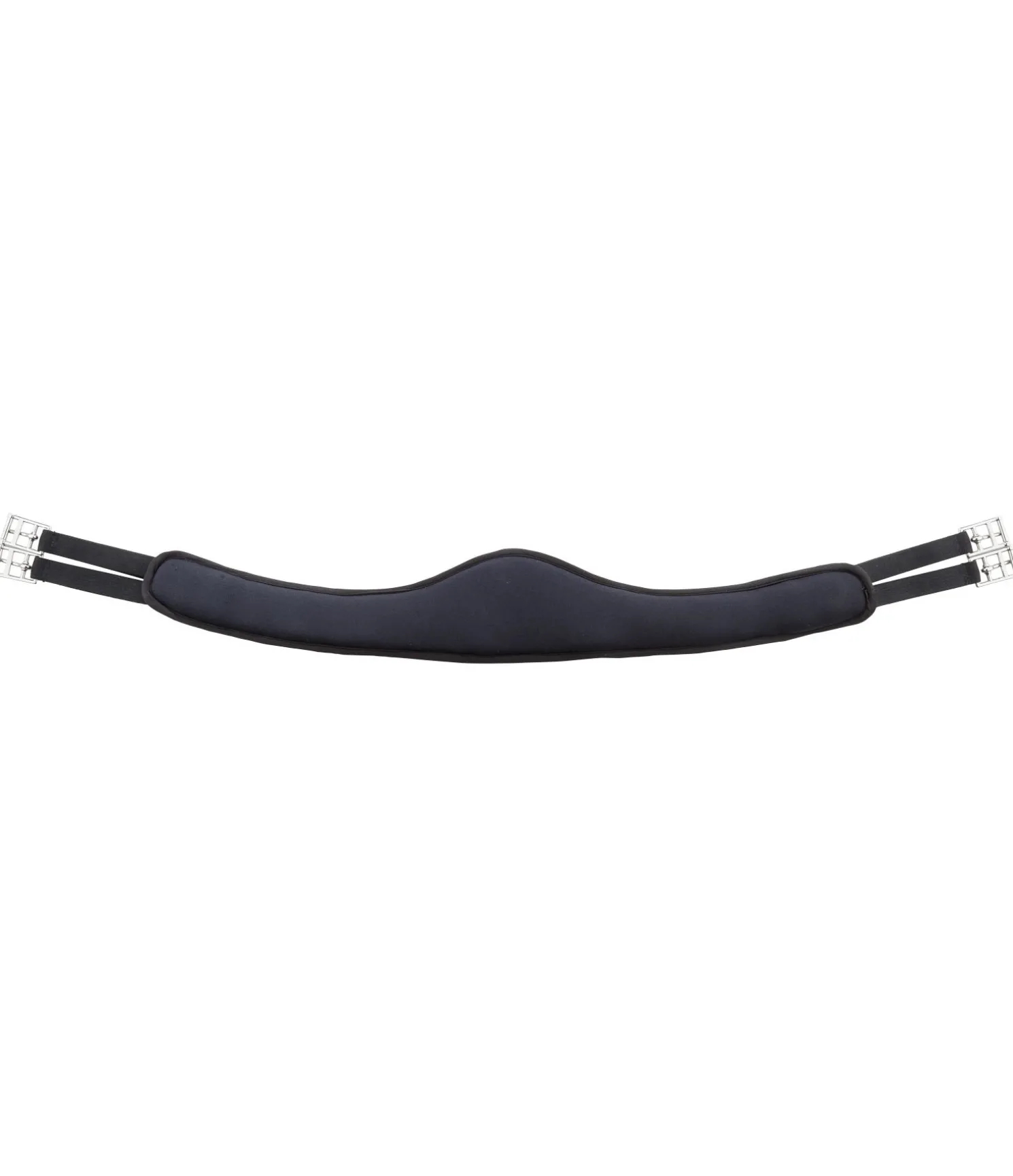 Sangle longue de forme anatomique incurvée pour les chevaux dont la selle a tendance à glisser vers l’avant et qui ont besoin de plus d’espace pour les coudes. Fabriquée en mousse à mémoire de forme qui retrouve sa frome initiale lorsque les appuis cessent. La large surface de contact anatomique et les élastiques des deux côtés assurent une répartition optimale des pressions. Avec anneau central en D et boucles à rouleau en acier inoxydable. Largeur : 8 à 14 cm.