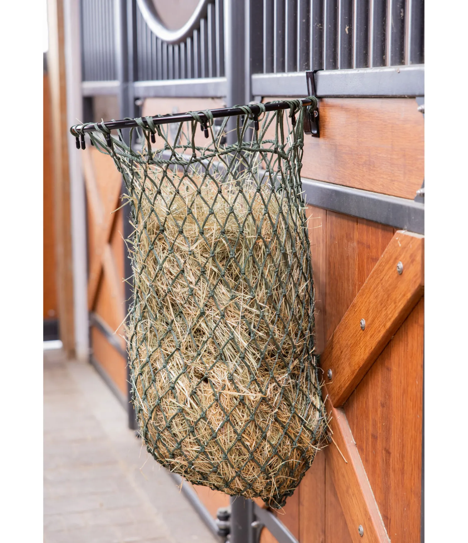 Support pliable pour remplir un filet à foin. Crochet de fixation. 14 points d’accroche pour fixer le filet à foin. Support pratique et peu encombrant pouvant être replié avec les points d’accroche vers l’arrière. Joli autocollant SHOWMASTER. Dimensions : diamètre 45 cm, crochet : largeur 4 cm / hauteur 5 cm.