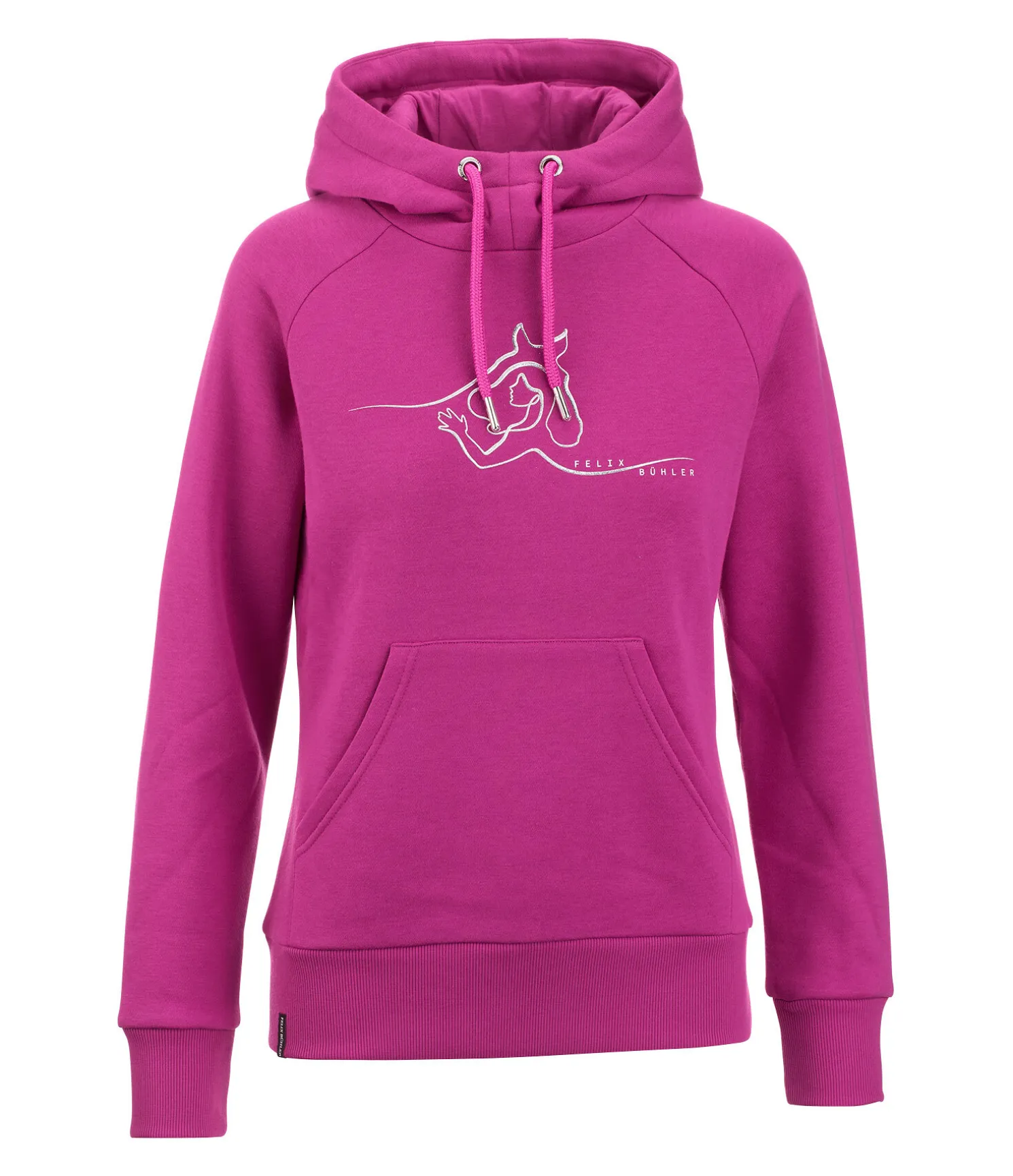 Sweat confortable et doux, avec capuche ajustable en coton stretch de qualité supérieure. Motif équestre scintillant sur la poitrine. Poche kangourou. Finition bord-côtes en bas des manches et à la taille. 65 % polyester, 35 % coton.