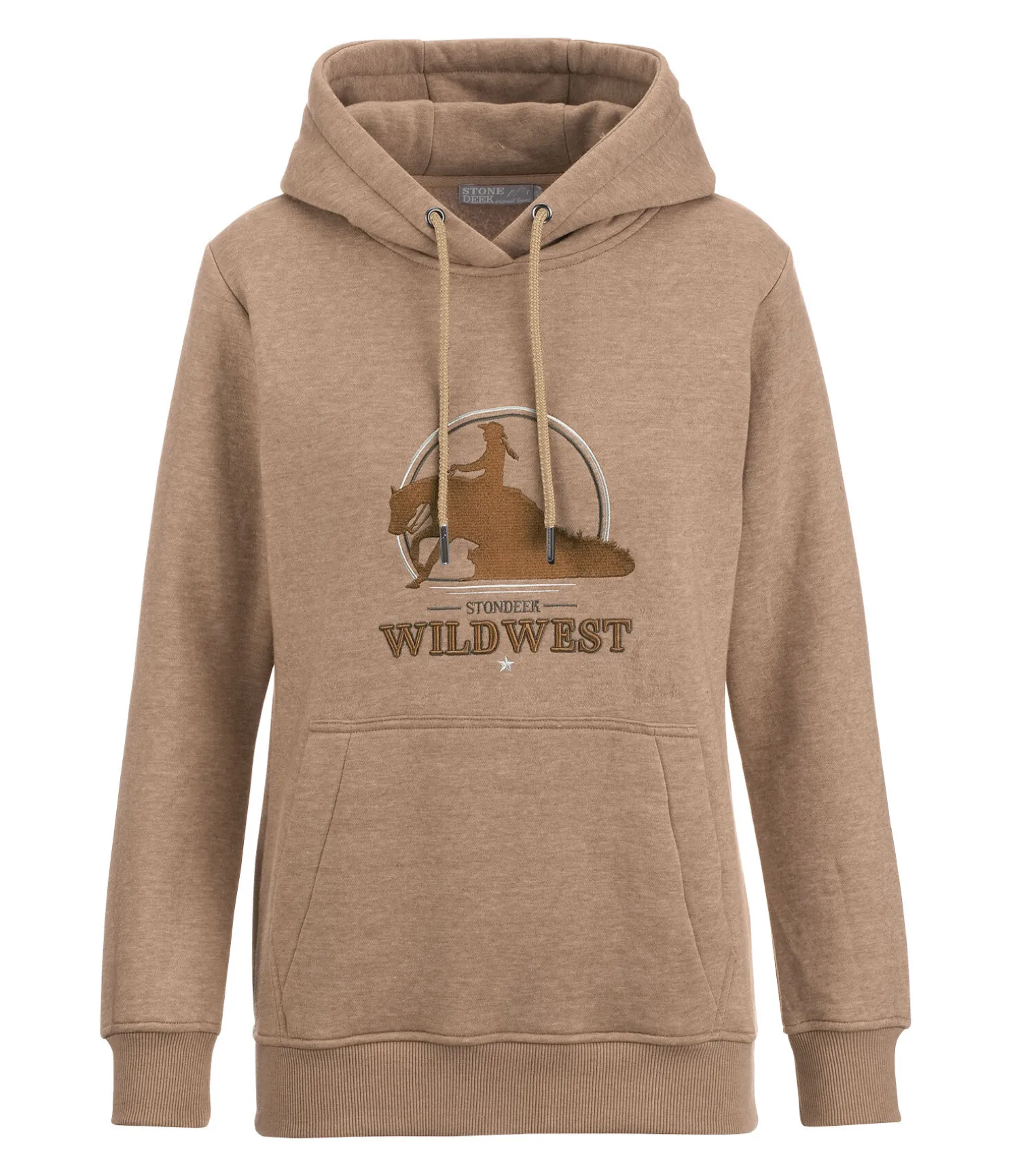 Sweat à capuche classique. Matière respirante. Motif western brodé sur la poitrine. Poche kangourou boutonnée. Bord-côte en bas des manches et à la taille. 65 % polyester, 35 % coton.