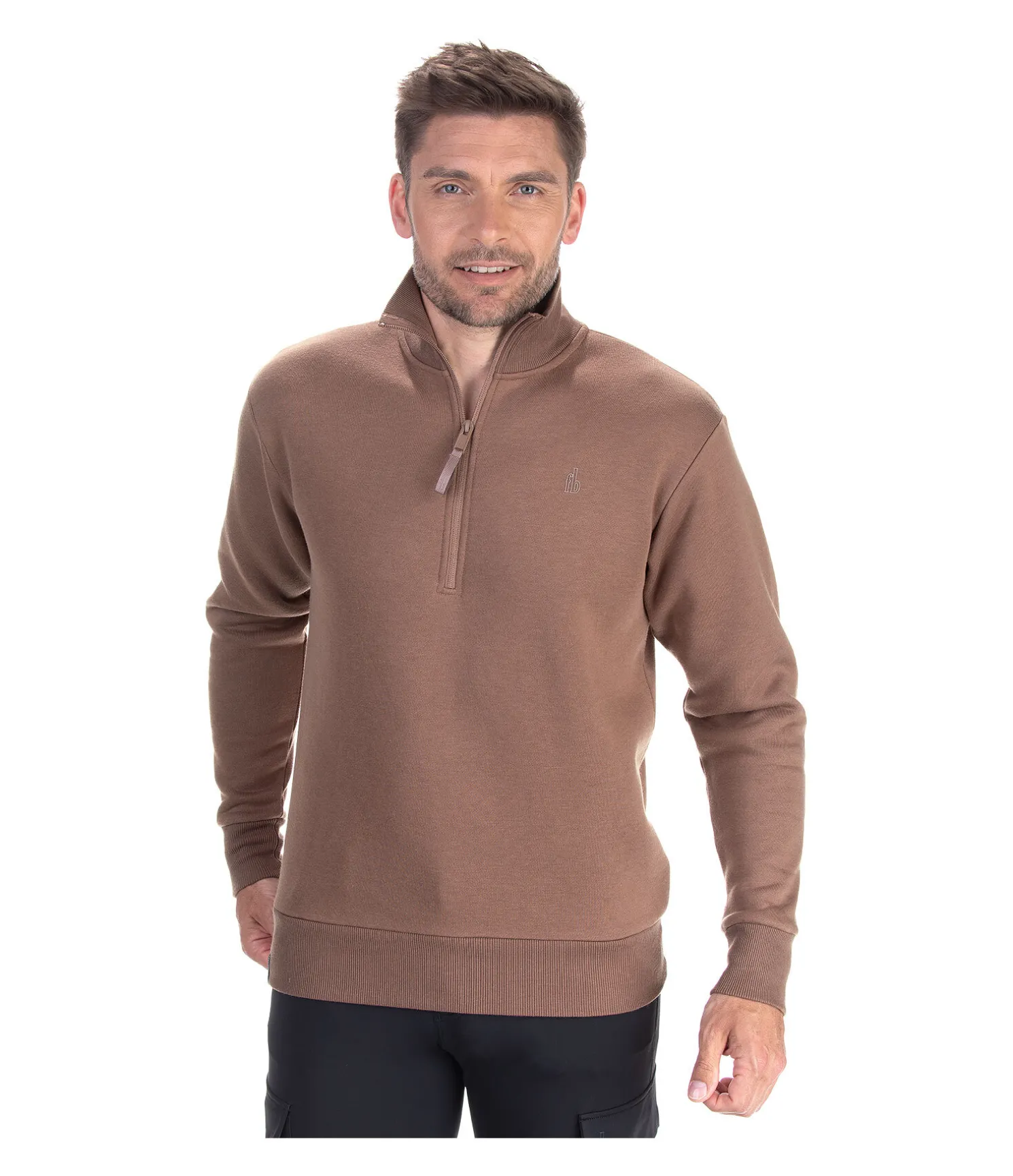 Sweat doux et sportswear en coton stretch de grande qualité. Col montant zippé. Finition douce en bord-côte en bas des manches et à la taille. Logo discret ton sur ton sur la poitrine. 65 % polyester, 35 % coton.
