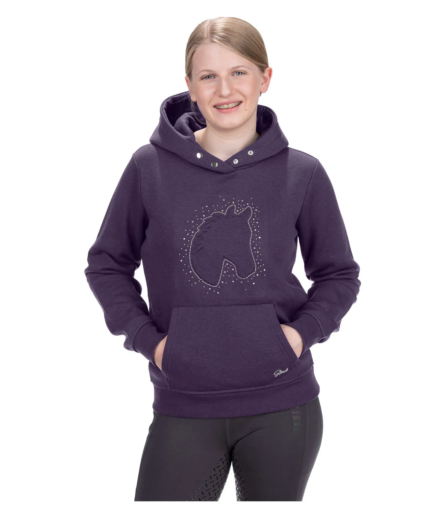 Superbe sweat à capuche avec imprimé en relief et strass aux couleurs de l’arc-en-ciel sur la poitrine. Capuche qui peut être fermée par boutons-pression. Agréablement doux grâce à son intérieur molletonné. Poche kangourou avec broderie STEEDS discrète. Bord des manches et taille en maille côtelée fine. 65 % polyester, 35 % coton.