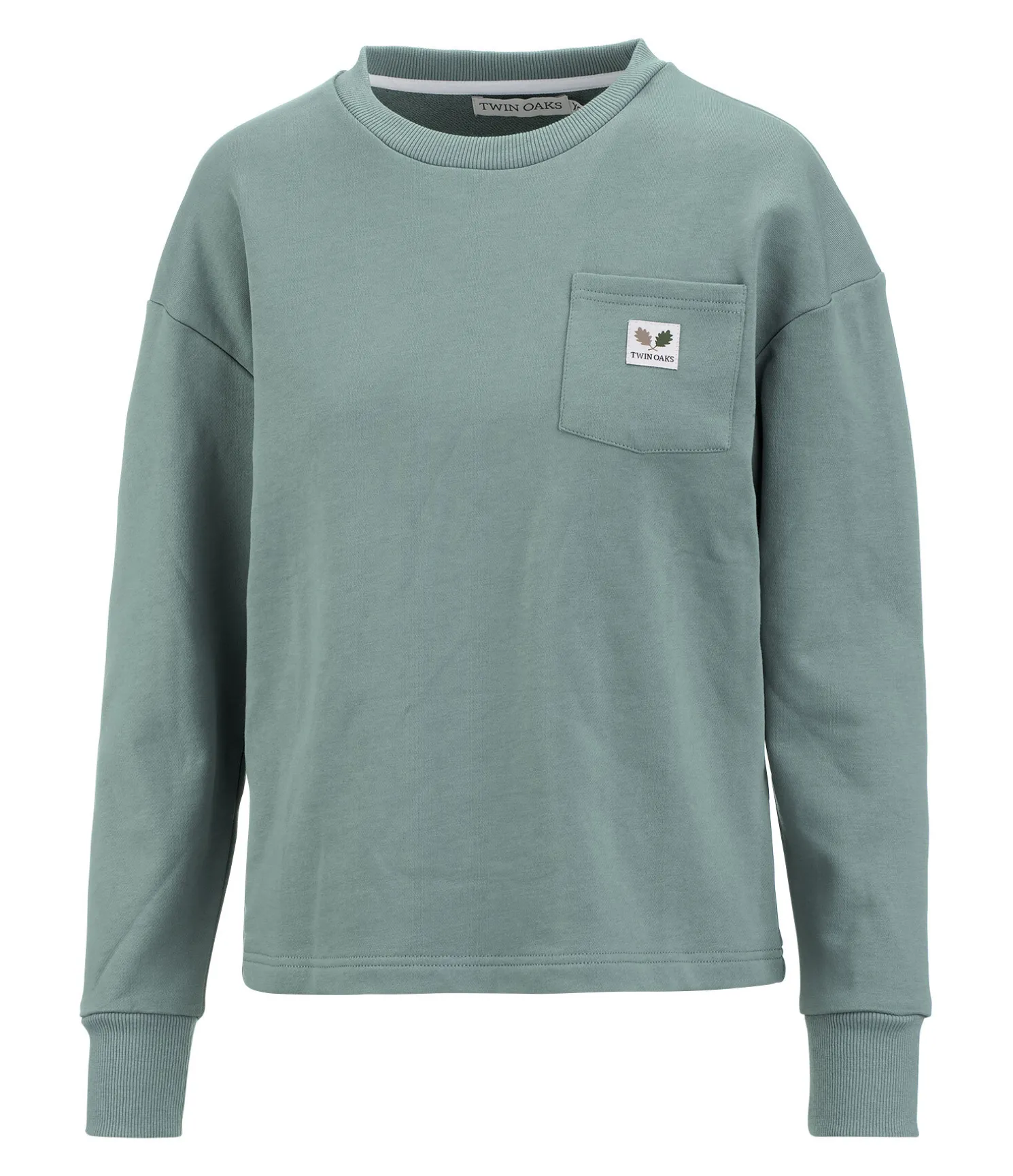 Idéal pour la mi-saison ! T-shirt ras de cou à manches longues en coton doux. Coupe oversize décontractée. Intérieur molletonné légèrement plus épais pour un confort optimal. Très bonne respirabilité. Finition en bord-côte sur le bas des manches et le col. 1 poche plaquée sur la poitrine avec logo discret. 100 % coton.
