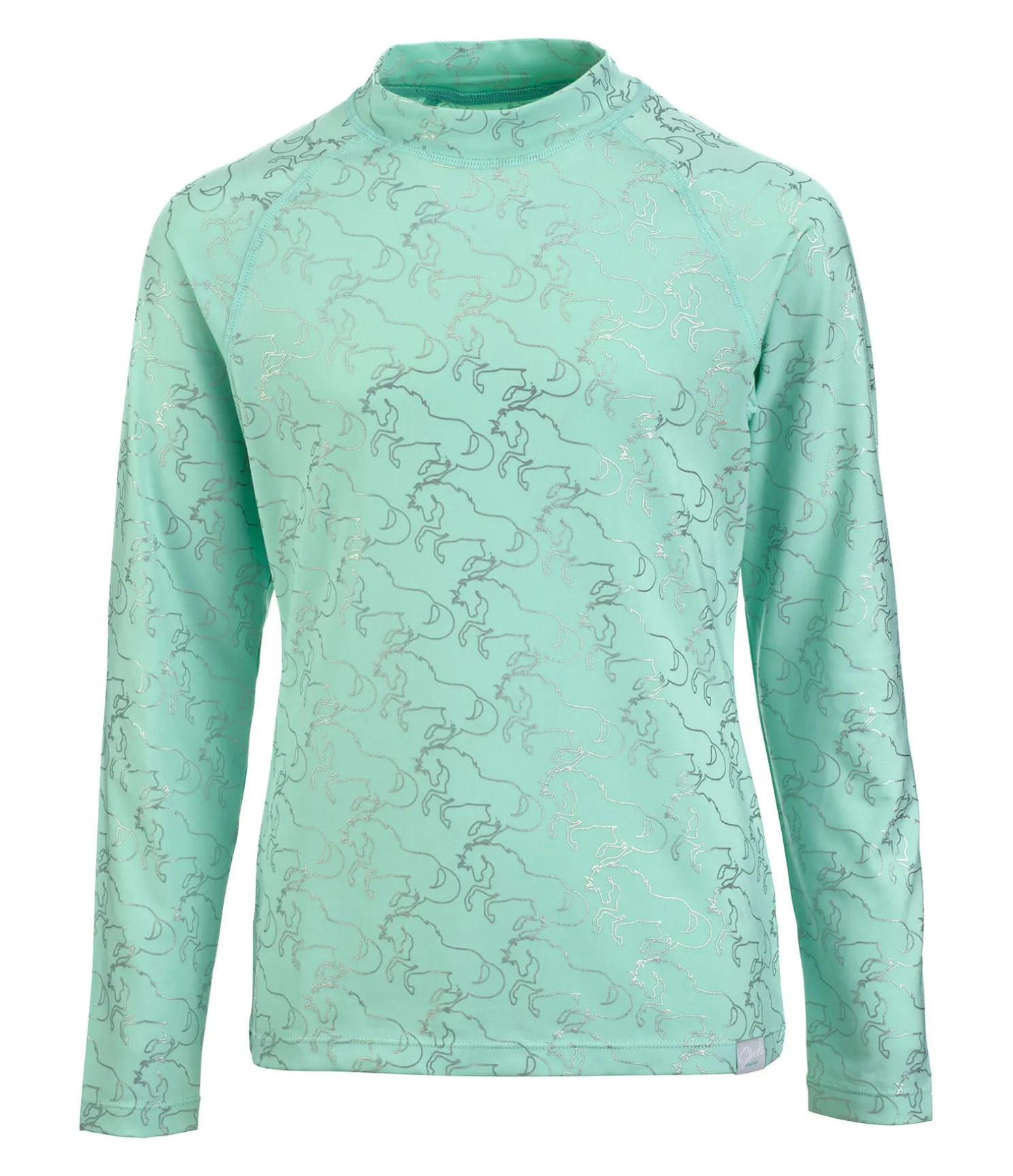 Indispensable pour l’été ! T-shirt enfant technique à manches longues raglan. Col légèrement montant. Matière respirante à séchage rapide. Protection UV 30+. Joli imprimé cheval all-over métallisé. 88 % polyester, 12 % élasthanne.
