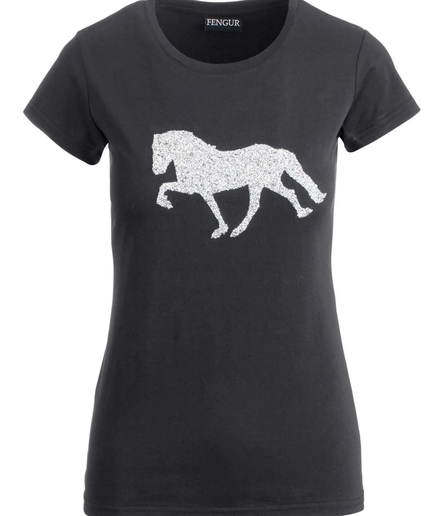 T-shirt doux avec motif islandais en strass scintillants sur la poitrine. 100 % coton.