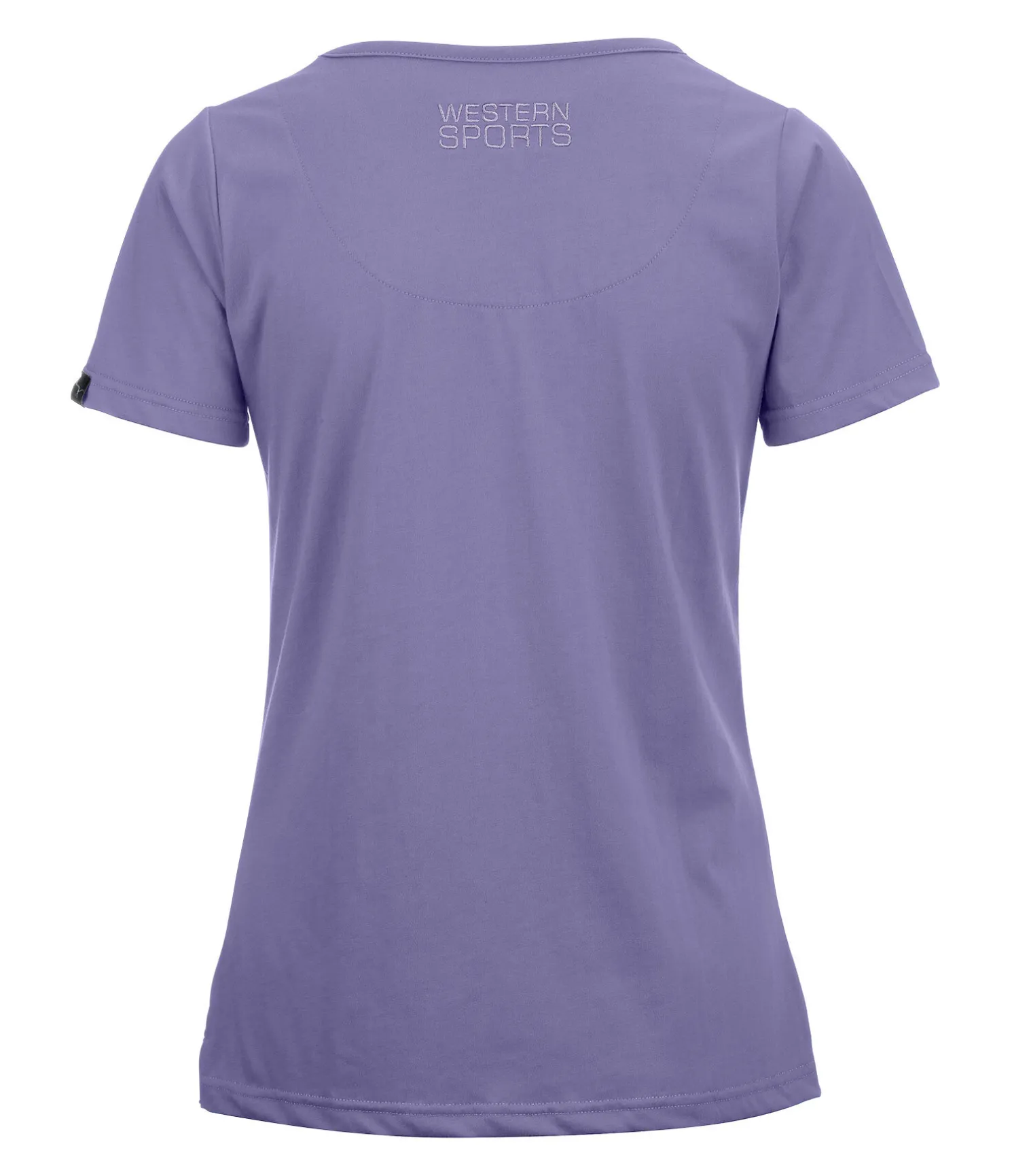 T-shirt à col rond. Matière respirante. Motif pailleté sur la poitrine. 65 % polyester, 35 % coton.