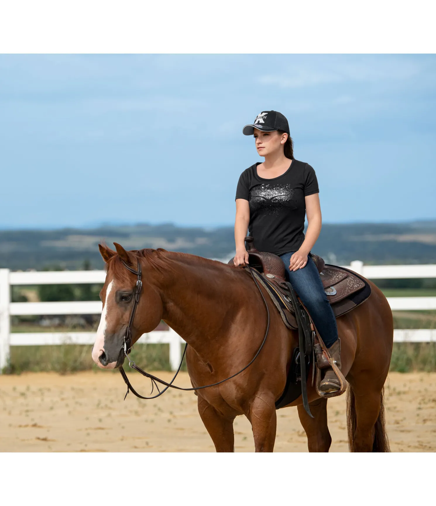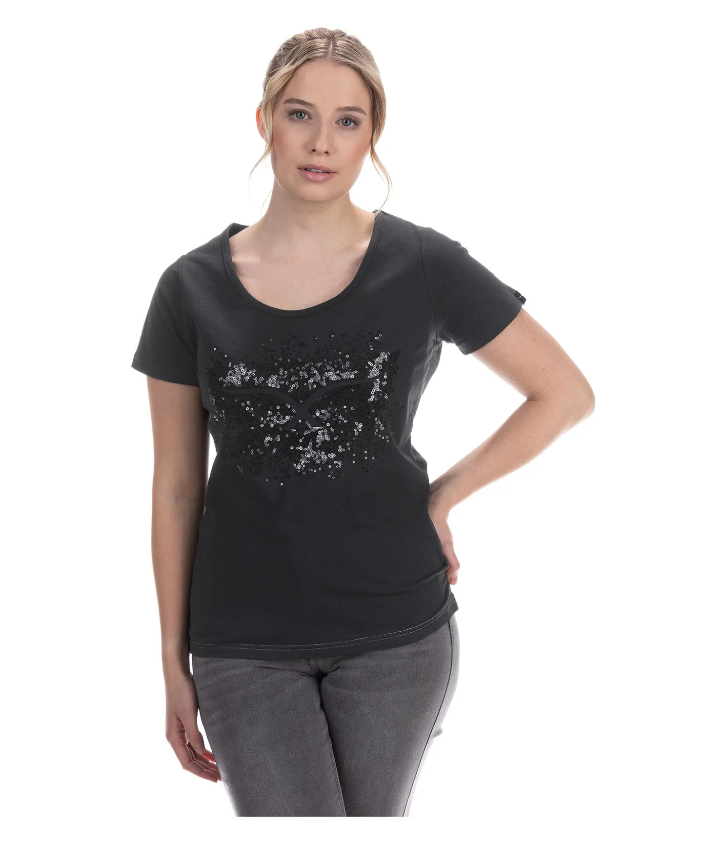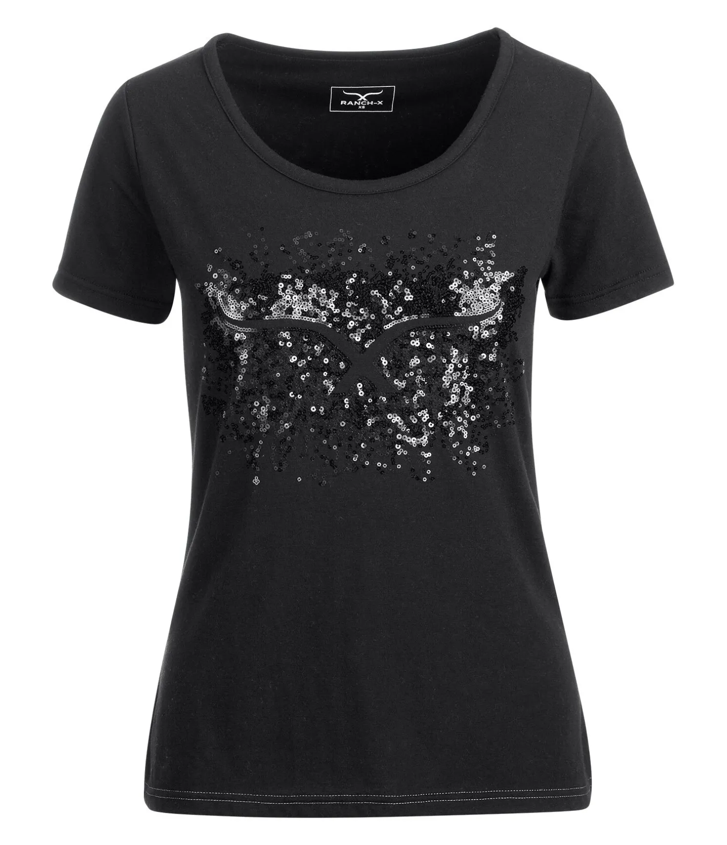 T-shirt à col rond. Matière respirante. Motif pailleté sur la poitrine. 65 % polyester, 35 % coton.