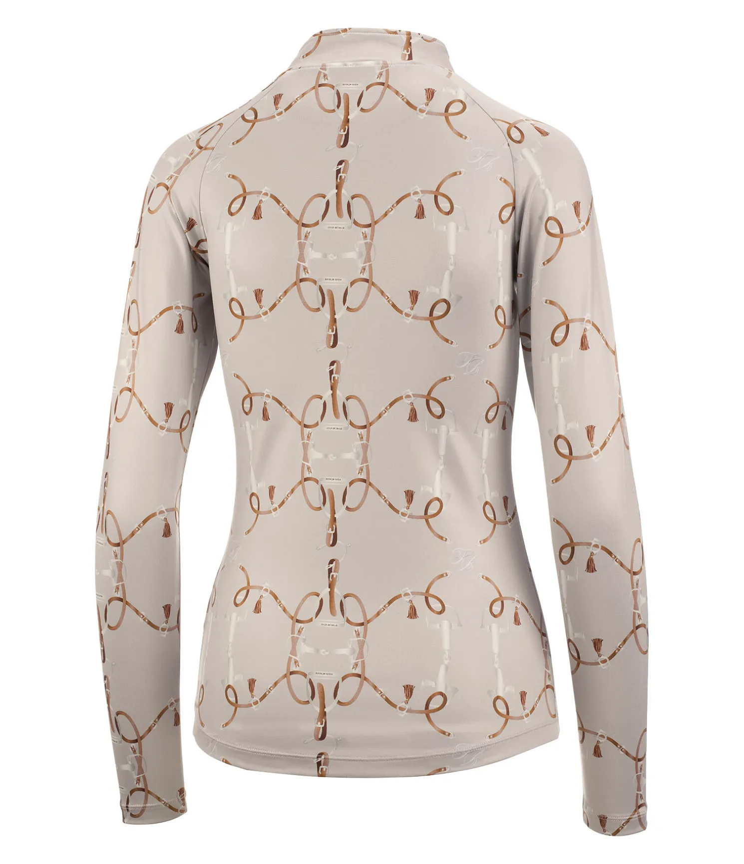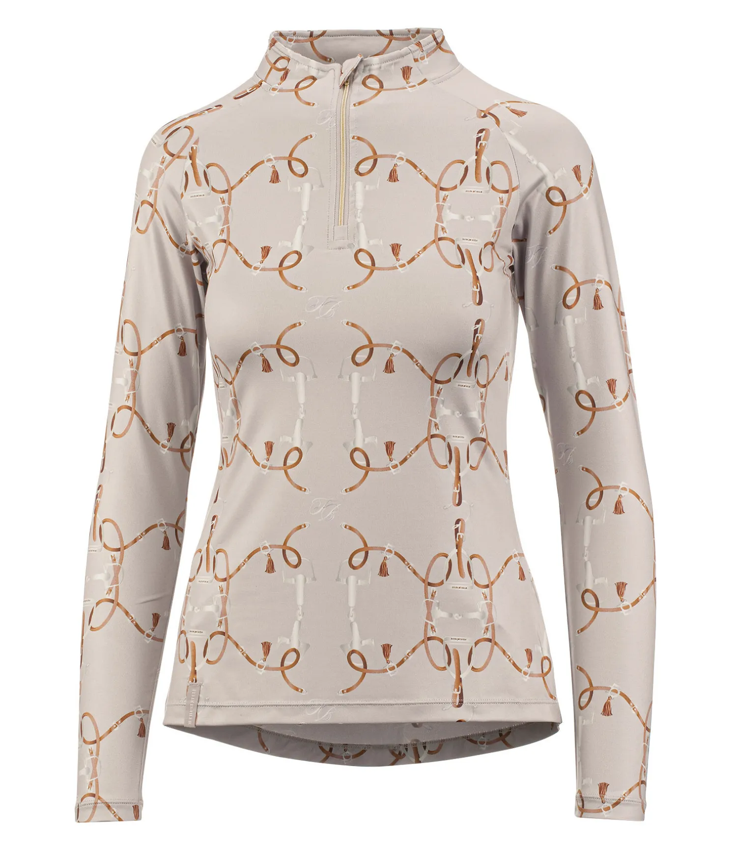 T-shirt fonctionnel à manches longues doux et extensible. Imprimé inspiration équestre all-over. Col montant zippé avec protège-menton. Matière respirante à séchage rapide. 88 % polyester, 12 % élasthanne.