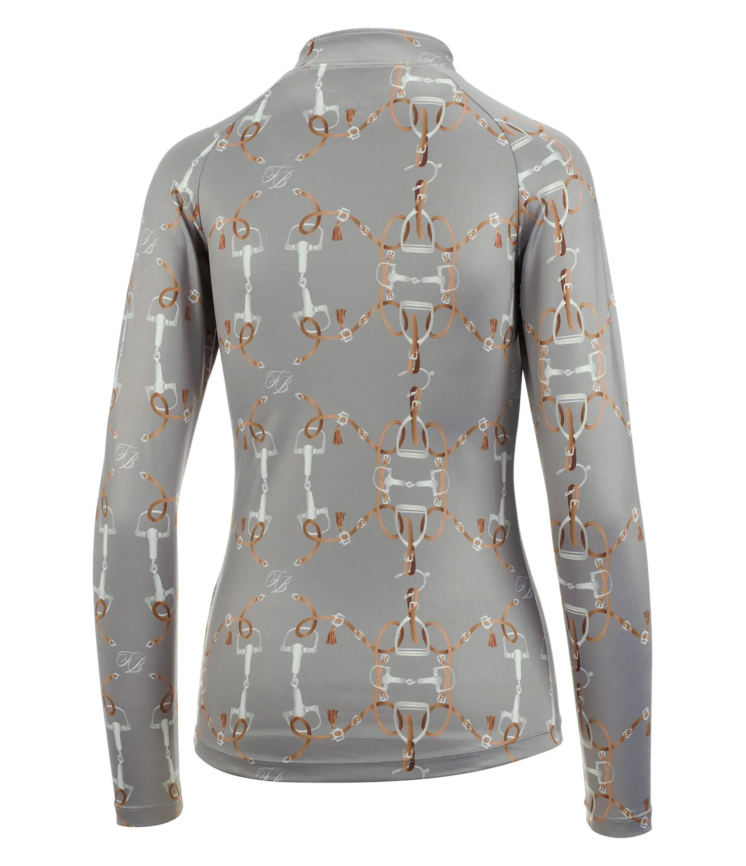 T-shirt fonctionnel à manches longues doux et extensible. Imprimé inspiration équestre all-over. Col montant zippé avec protège-menton. Matière respirante à séchage rapide. 88 % polyester, 12 % élasthanne.