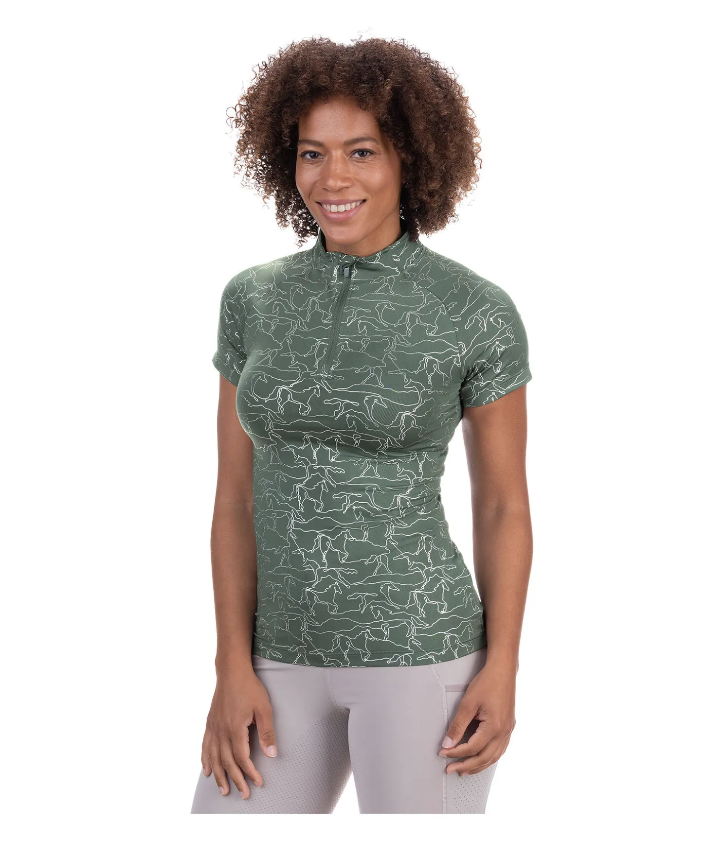 T-shirt technique. Manches raglan. Col montant zippé avec protège-menton. Imprimé argenté all-over. Matière respirante à séchage rapide. 88 % polyester, 12 % élasthanne.