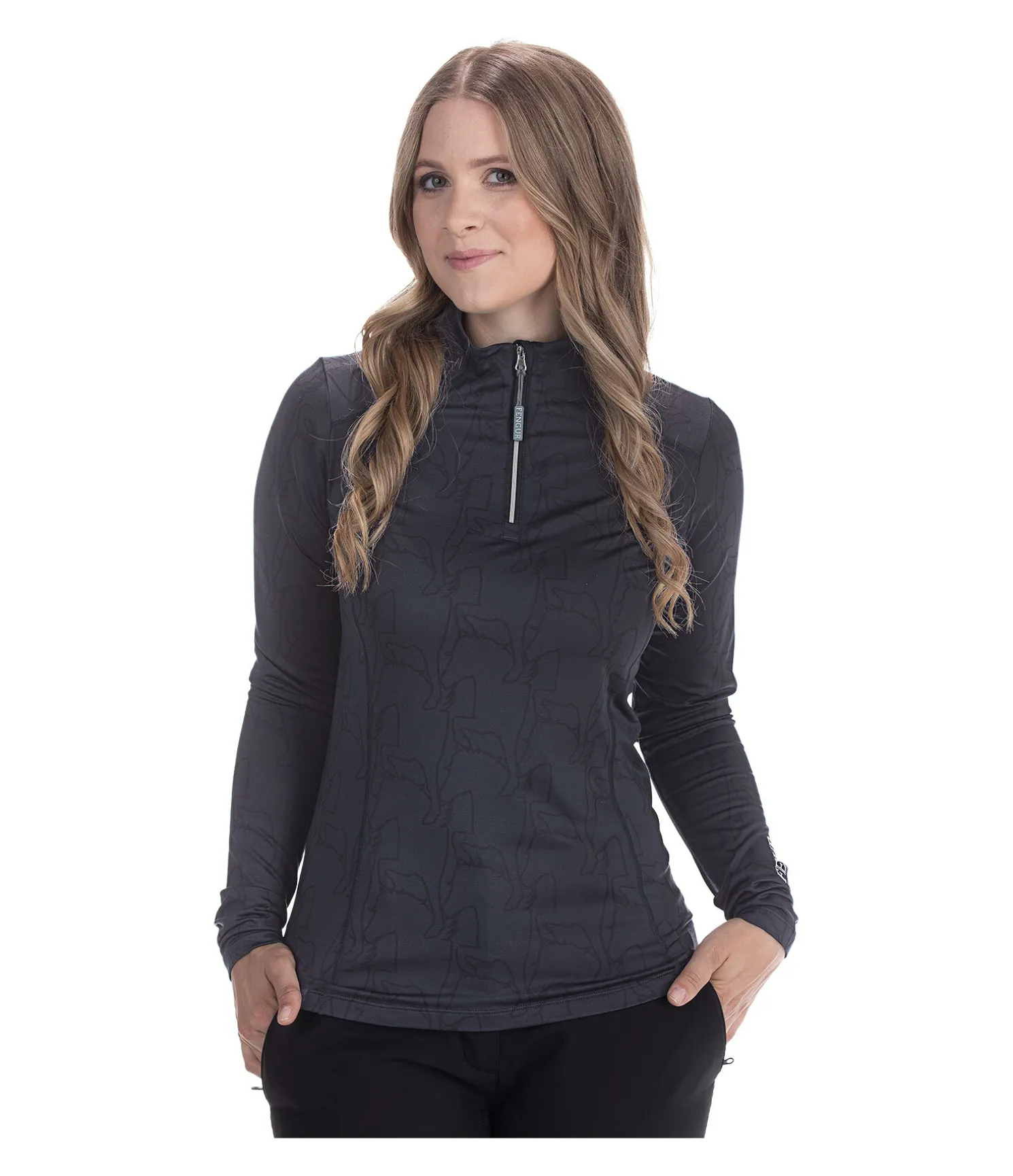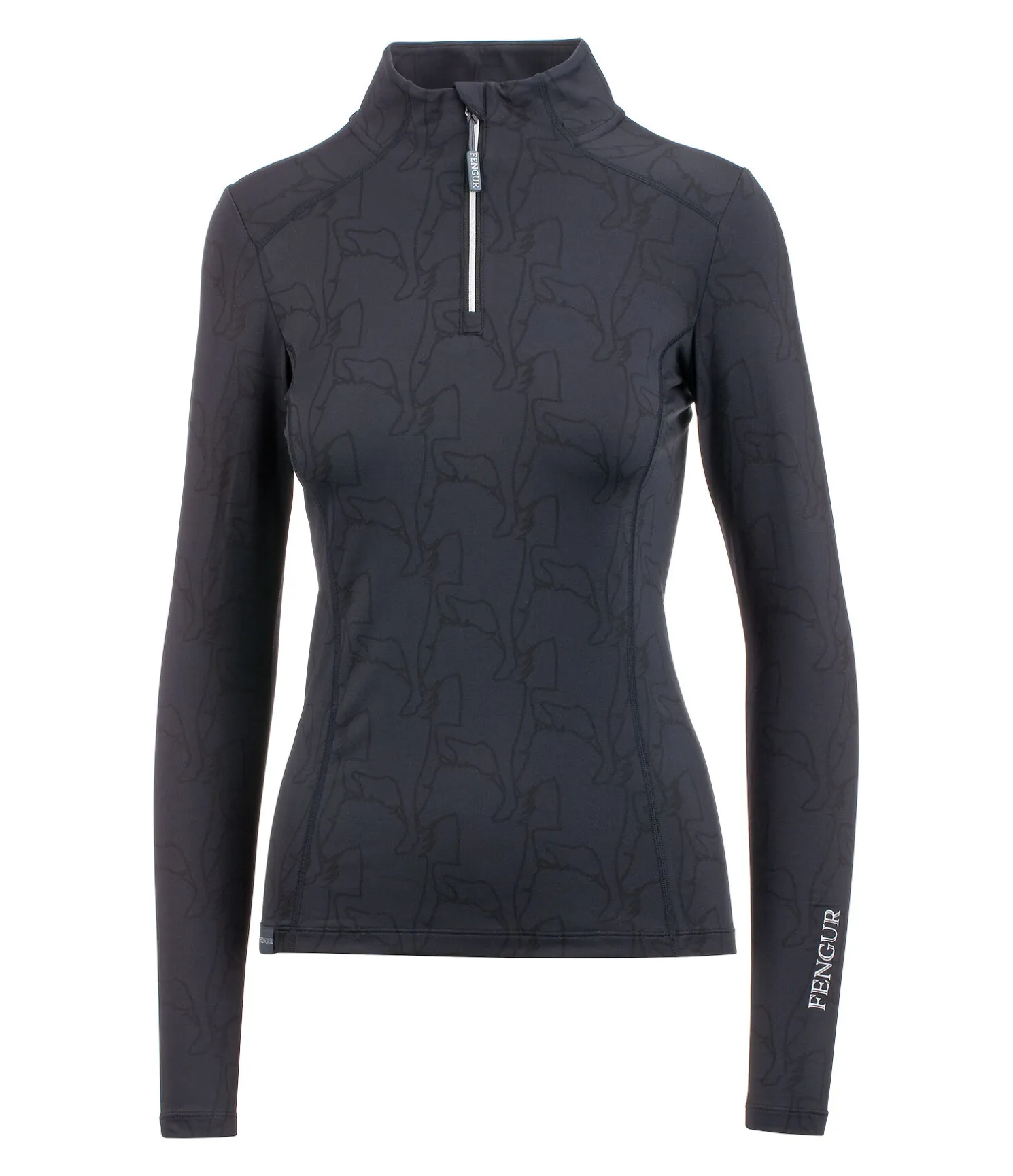 Joli T-shirt technique à manches longues, doux et extensible. Col montant zippé avec protège-menton. Matière respirante. Séchage rapide. Motif all-over tête de cheval. 88 % polyester, 12 % élasthanne.