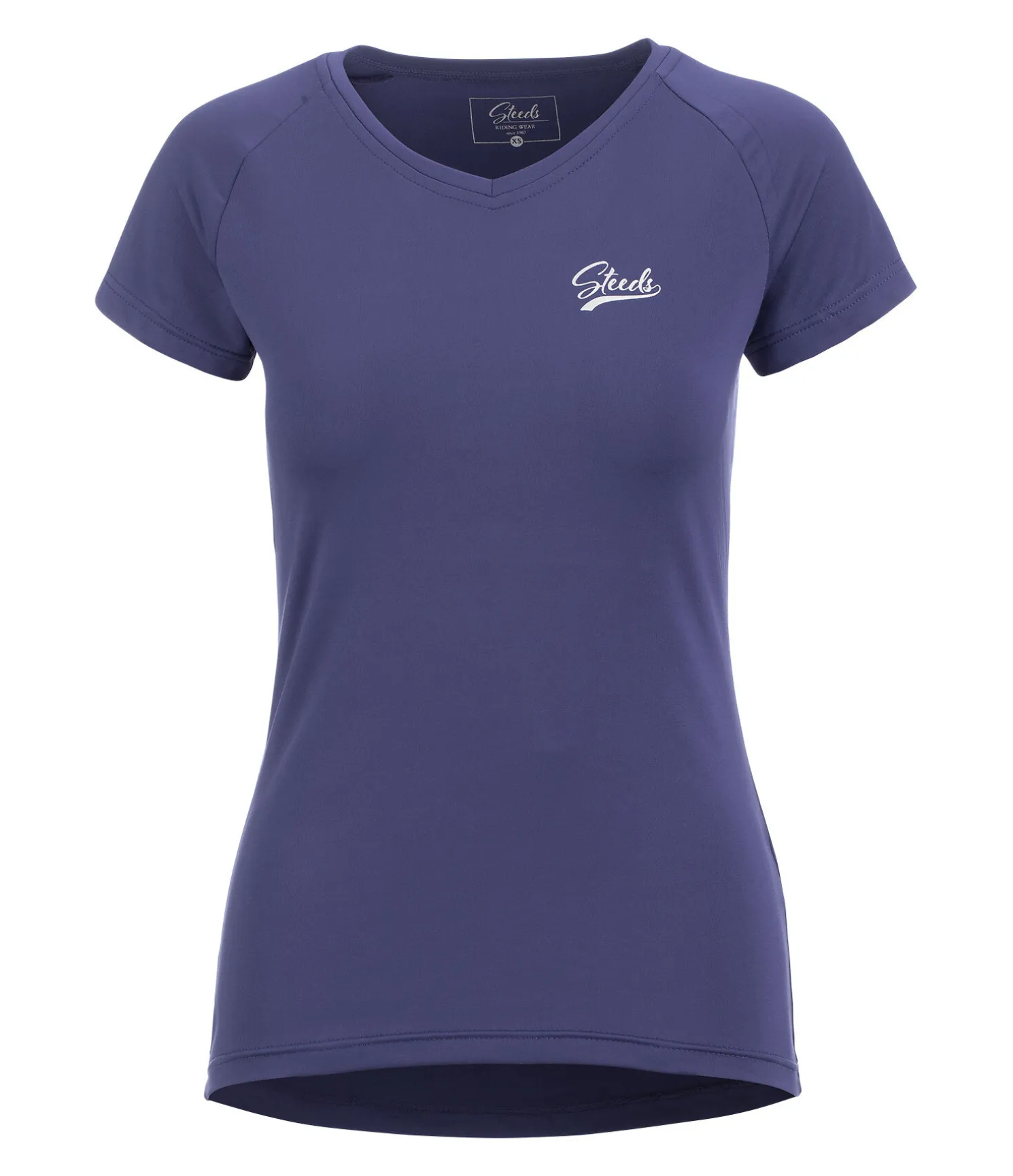 T-shirt col en V à manches courtes. Doux et extensible. Matière respirante à séchage rapide. Imprimé argenté sur la poitrine. 88 % polyester, 12 % élasthanne.