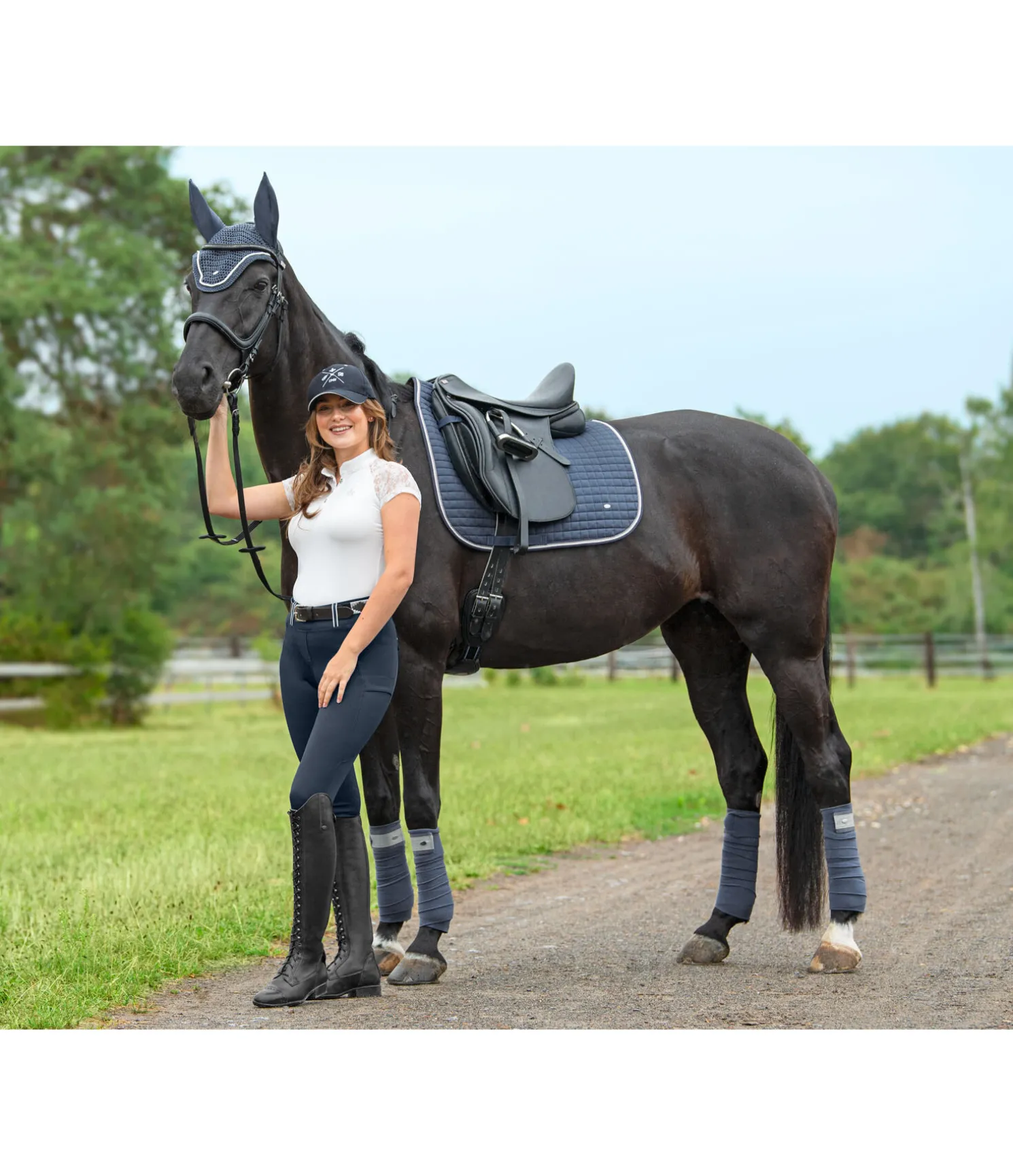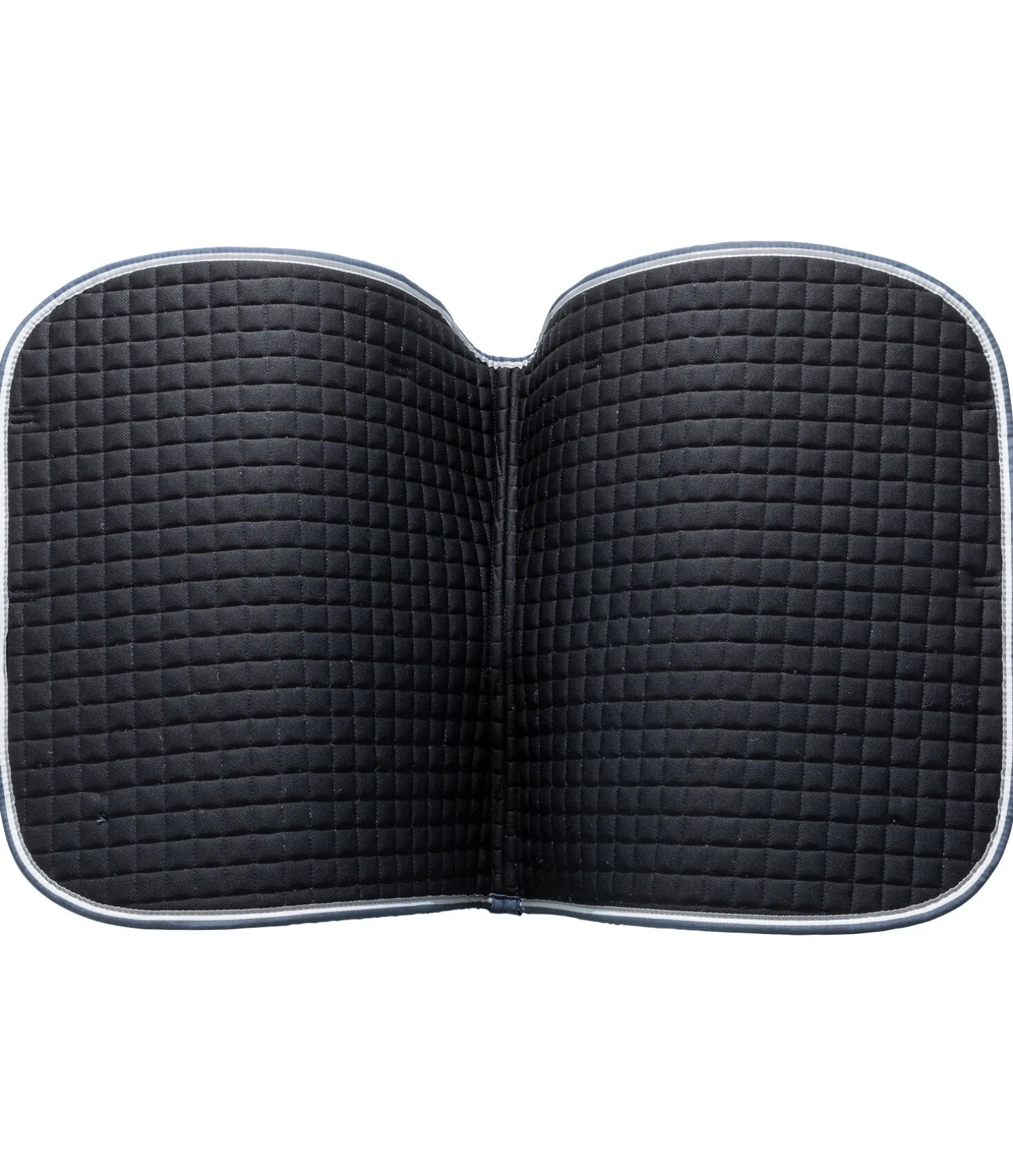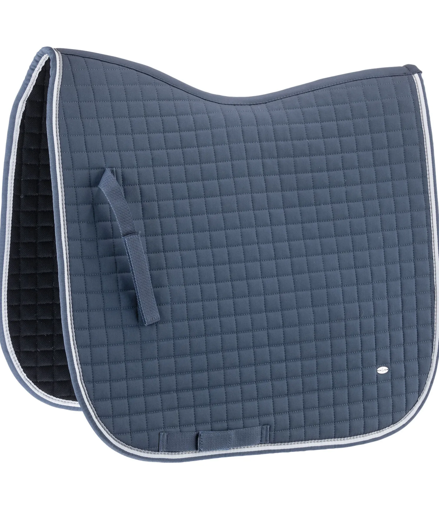 Tapis de selle en coton sobre et indéformable grâce au matelassage resserré, avec bordure colorée et petite plaque métallique argentée avec logo gravé. Passants de sangle et de contre-sanglons avec patte auto-agrippante pratique. Dessous en Air mesh respirant et absorbant l’humidité. Dessus 100 % coton, rembourrage et dessous 100 % polyester.