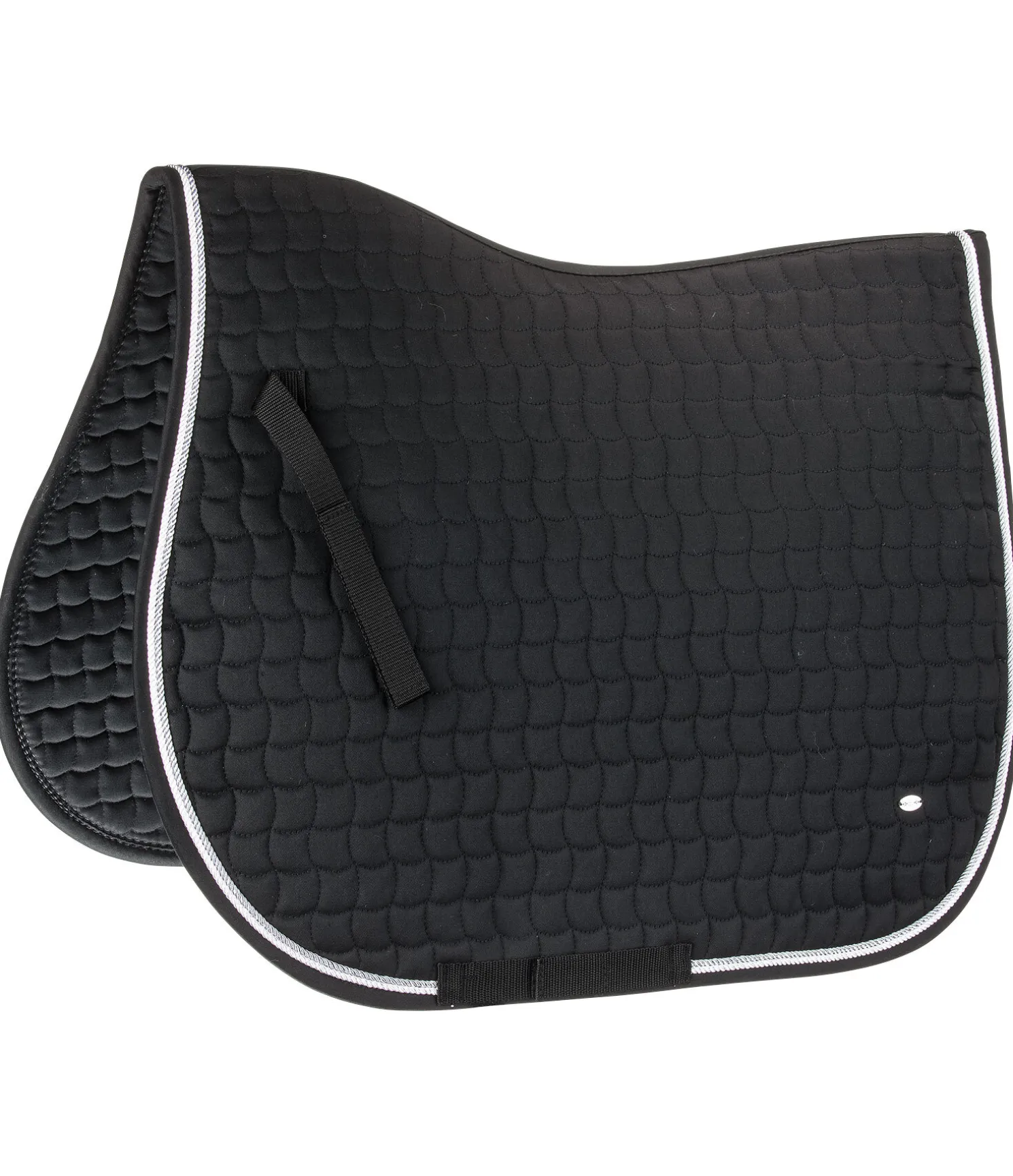 Tapis de selle élégant et durable en coton avec matelassage fin et minimaliste. Décoré d’une petite plaque métallique avec gravure du logo. Bordure ornée de deux cordons scintillants. Passants de sangle et de contre-sanglons avec patte auto-agrippante pratique. Doublure en coton, respectueuse de la robe et absorbant l’humidité. Dessus et doublure 100 % coton, rembourrage 100 % polyester.