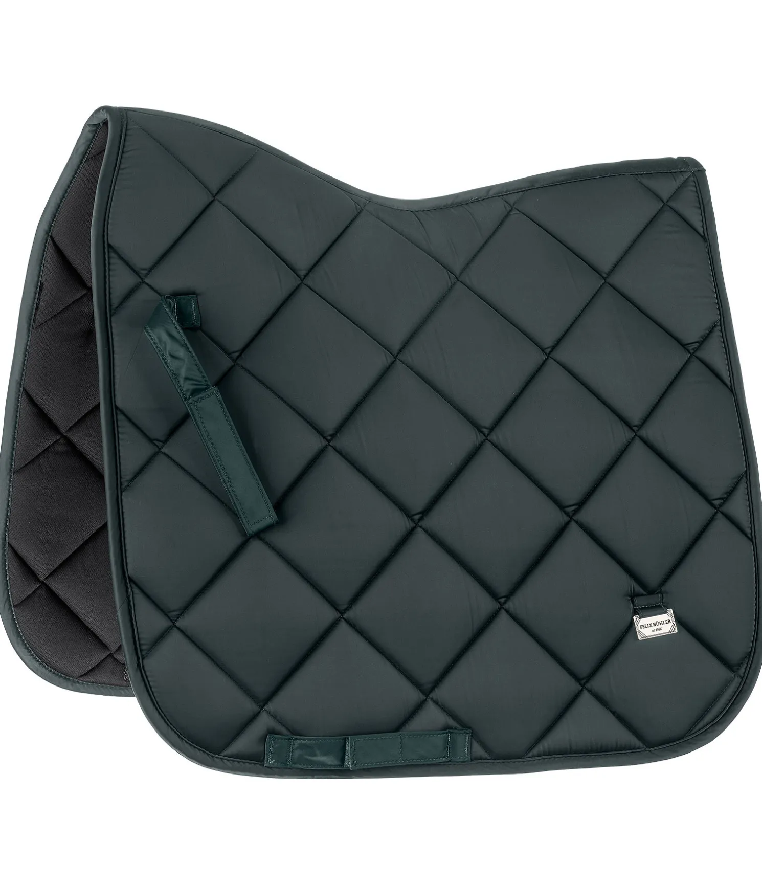 Tapis de selle épuré et brillant en tissu satiné avec une élégante surpiqûre en losange. Orné de chaque côté d’une petite plaque métallique avec logo. Passants de sangle et de contre-sanglons avec patte auto-agrippante pratique. Dessous en Air mesh respirant et absorbant l’humidité. 100 % polyester.