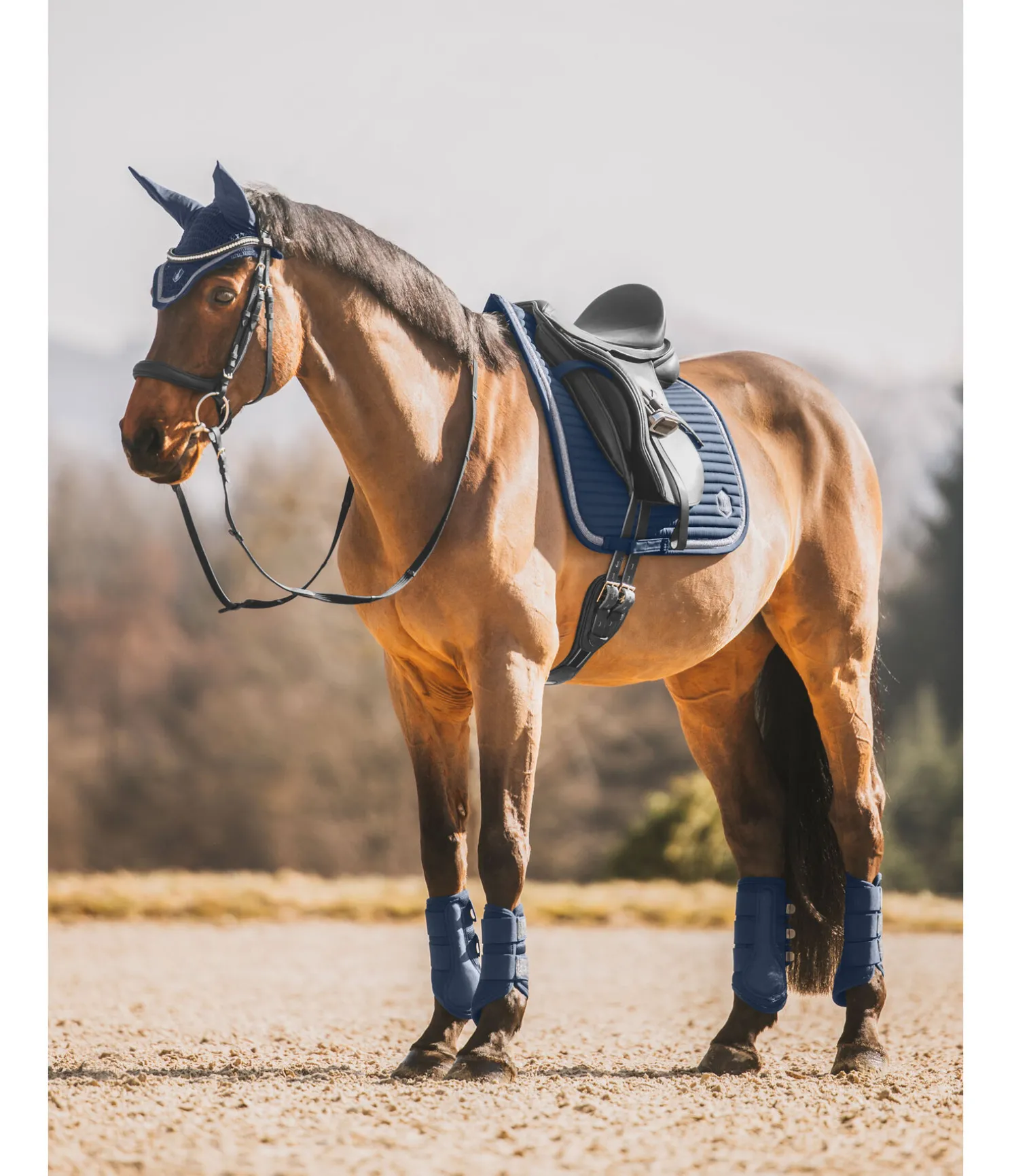 Tapis de selle élégant et sportif avec bande scintillante de couleur assortie et logo ton sur ton. Insert en mesh particulièrement respirant le long du dos pour une aération optimale. Dessus en matière lisse, souple et anti-salissures. Surpiqûre horizontale sportive. Passants de sangle et de contre-sanglons avec pattes auto-agrippantes pratiques. Dessous en Air mesh respirant et absorbant l’humidité. 100 % polyester.