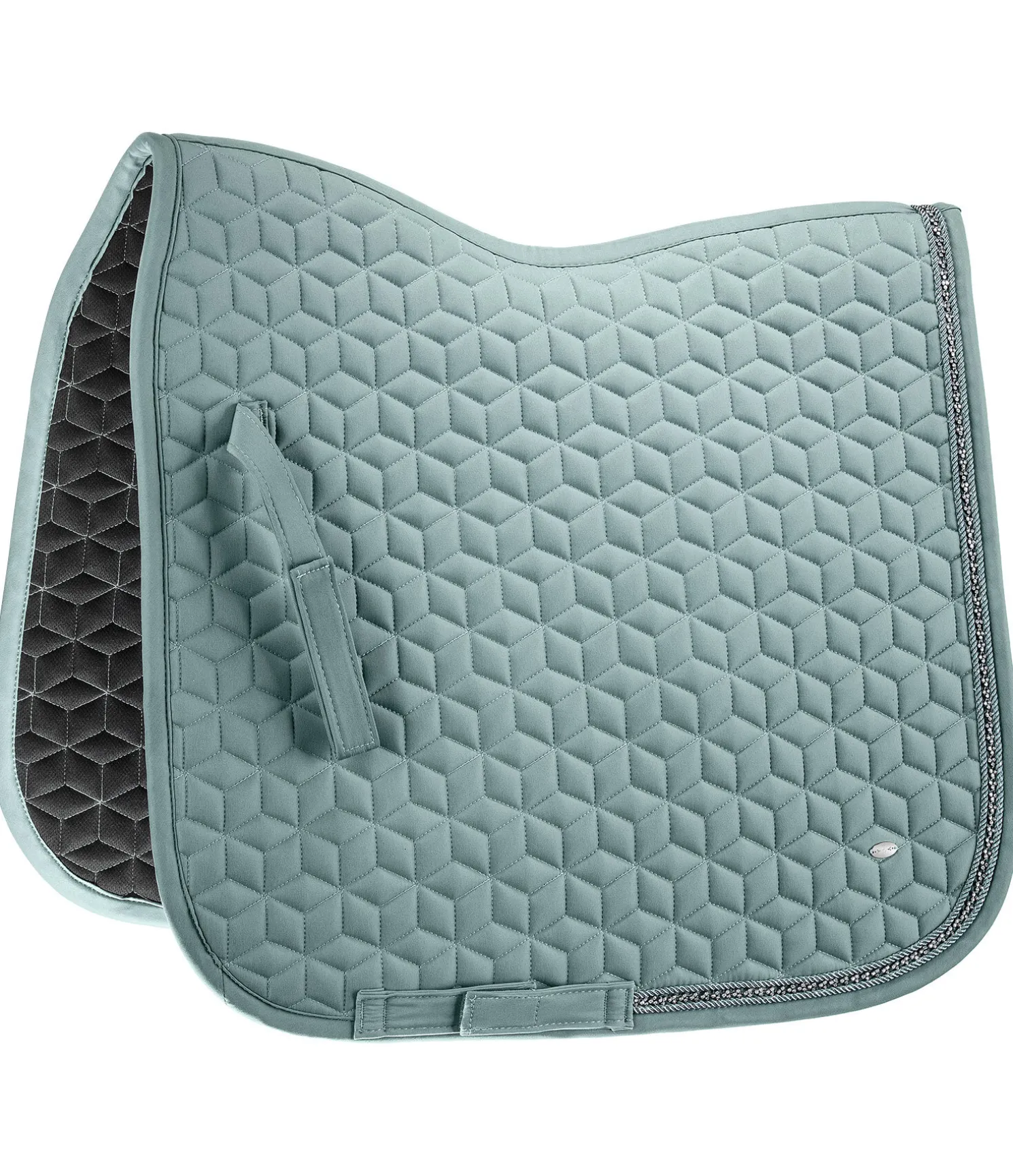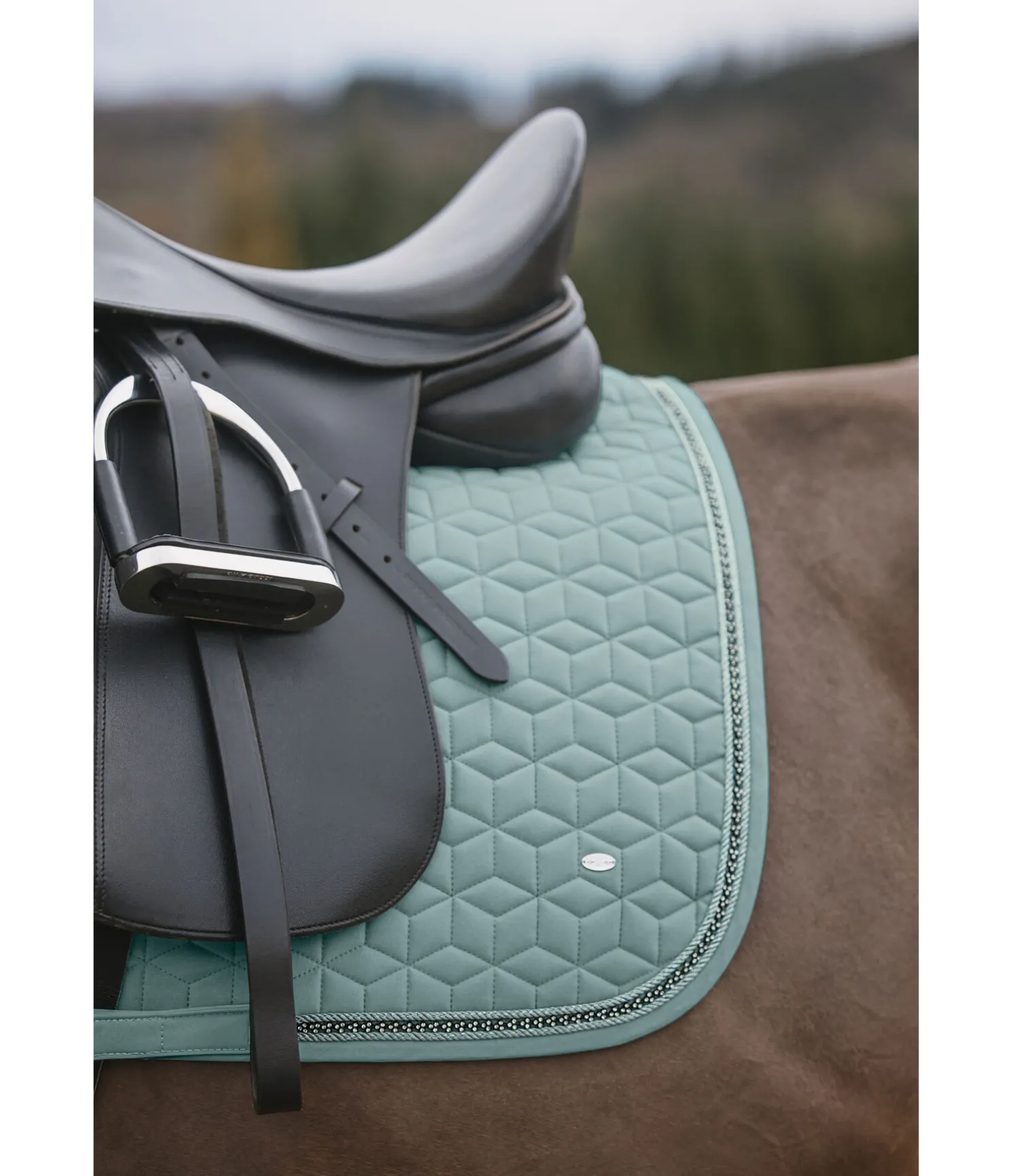 Tapis scintillant orné de petits strass sur un double cordon décoratif brillant. Plaque logo discrète et petite surpiqûre. Passants de sangle et de contre-sanglons avec pattes auto-agrippantes pratiques. Dessous en matière Air mesh respirante et absorbant l’humidité. 100 % polyester.