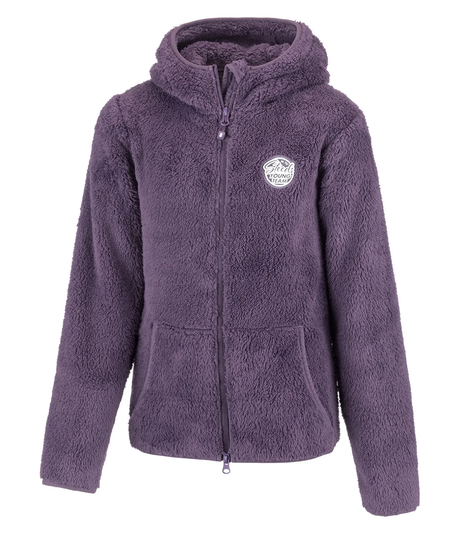 Veste à capuche en polaire particulièrement douce. Badge logo sur la poitrine. Fermeture à glissière double sens avec protège-menton. 2 poches latérales. Bordure élastiquée sur le bas des manches, l’ourlet et la capuche. 100 % polyester.