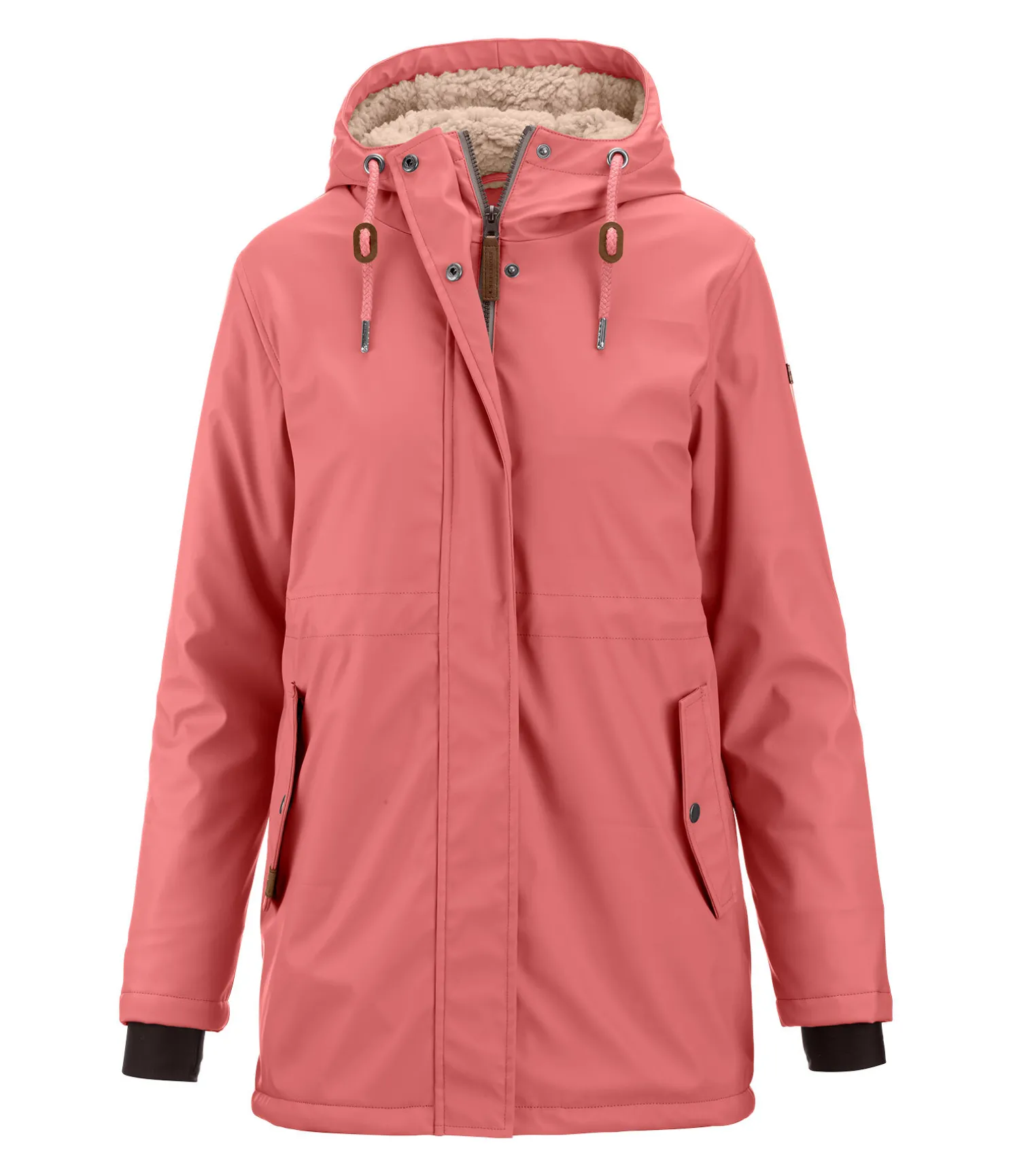 Veste de pluie tendance avec badge logo en matière synthétique sur la manche. Doublure en polaire douce à l’intérieur de la capuche et de la veste. Imperméable et coupe-vent. Fermeture à glissière double sens dissimulée. Fente cavalière ainsi que poches latérales à fermeture à glissière. Capuche, taille et bas de veste ajustables. Bouton-pression pour fixer la capuche dans le dos. 100 % polyuréthane, doublure intérieure 100 % polyester.