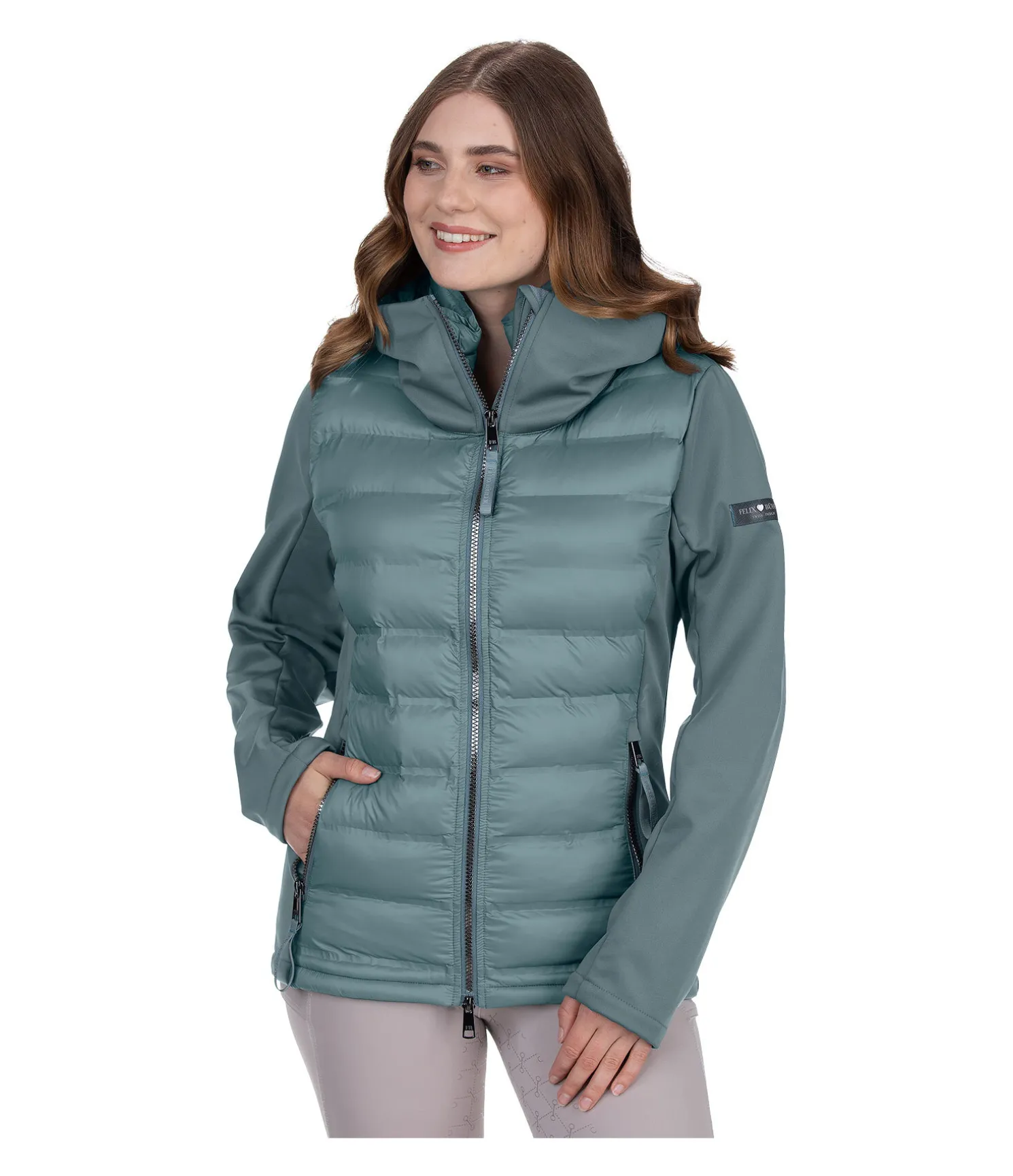 Superbe combinaison de softshell extensible et de nylon avec un garnissage très doux en imitation duvet devant et derrière. Coupe-vent. Double col et capuche rembourrée repliable dans le large col extérieur par fermeture à glissière. Coutures thermosoudées, fermeture à glissière double sens avec sous-patte et protège-menton, 2 poches zippées devant. Logo élaboré sur la manche et le col. Avant, dos, col intérieur et capuche 100 % nylon, matière softshell 92 % polyester, 8 % élasthanne.