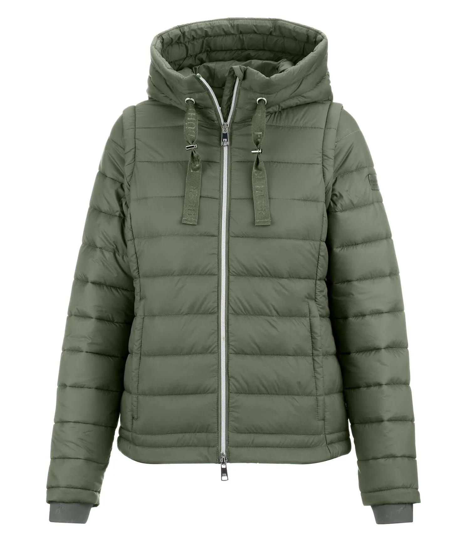 À la fois veste et gilet ! Veste d’équitation matelassée sportswear et confortable. Manches amovibles par fermeture à glissière. Capuche ajustable pouvant être fixée dans le dos par un bouton-pression. Fermeture à glissière double sens avec sous-patte et protège-menton, 2 poches zippées à l’avant. Bas des manches avec finition bord-côtes coupe-vent. 100 % nylon.