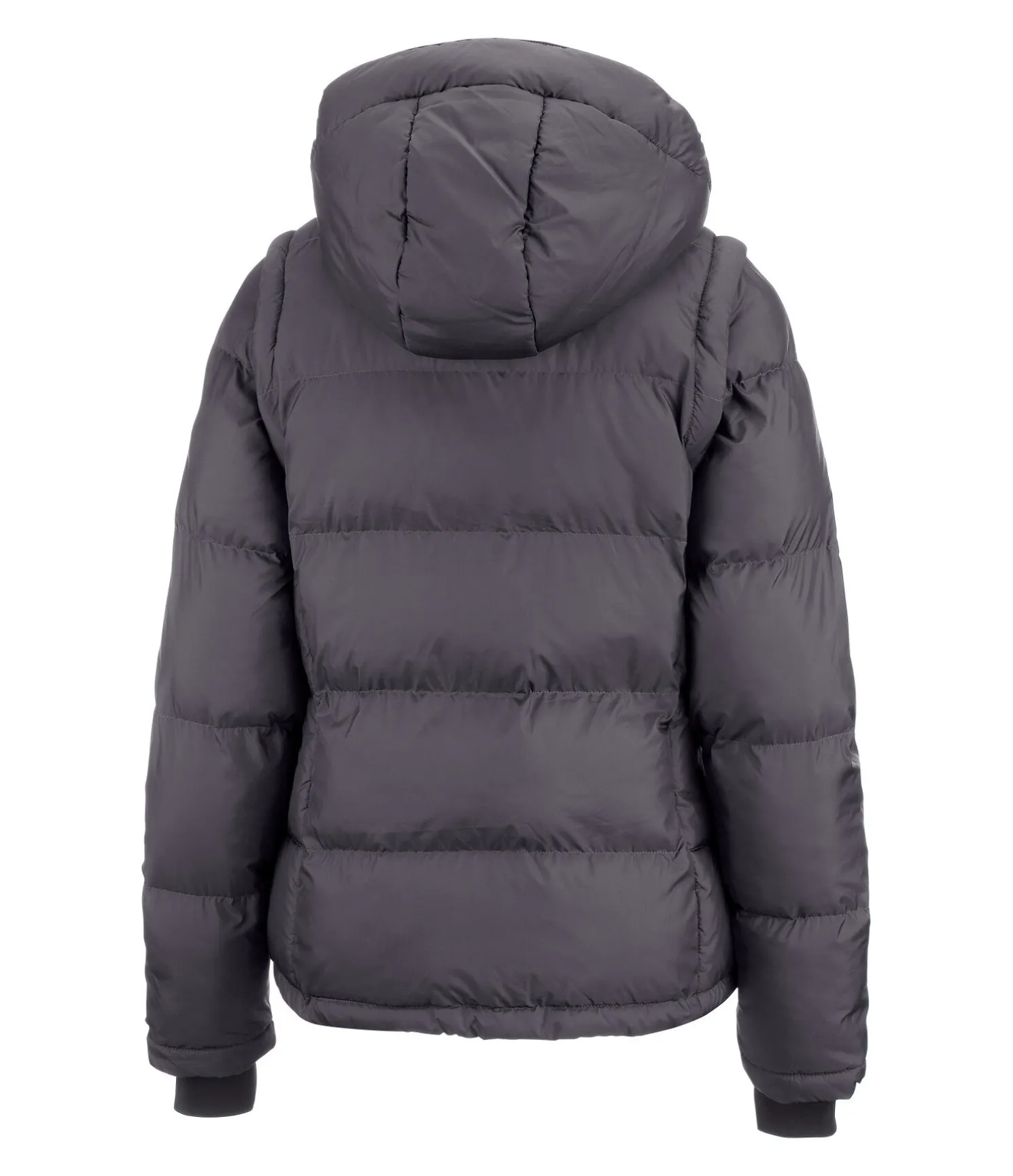 Une veste et un gilet en une seule pièce ! Veste d’équitation chaude avec manches amovibles zippées. Garnissage doux imitation duvet. Col montant. Capuche doublée en polaire, amovible et ajustable par cordon de serrage. Bouton-pression pour fixer la capuche dans le dos. Fermeture à glissière double sens dissimulée. 2 poches avant doublées en polaire, zippées et dissimulées. Badge Felix Bühler sur le bras. Finition en bord-côte sur le bas des manches. Taille ajustable par cordon de serrage. 100 % polyester.