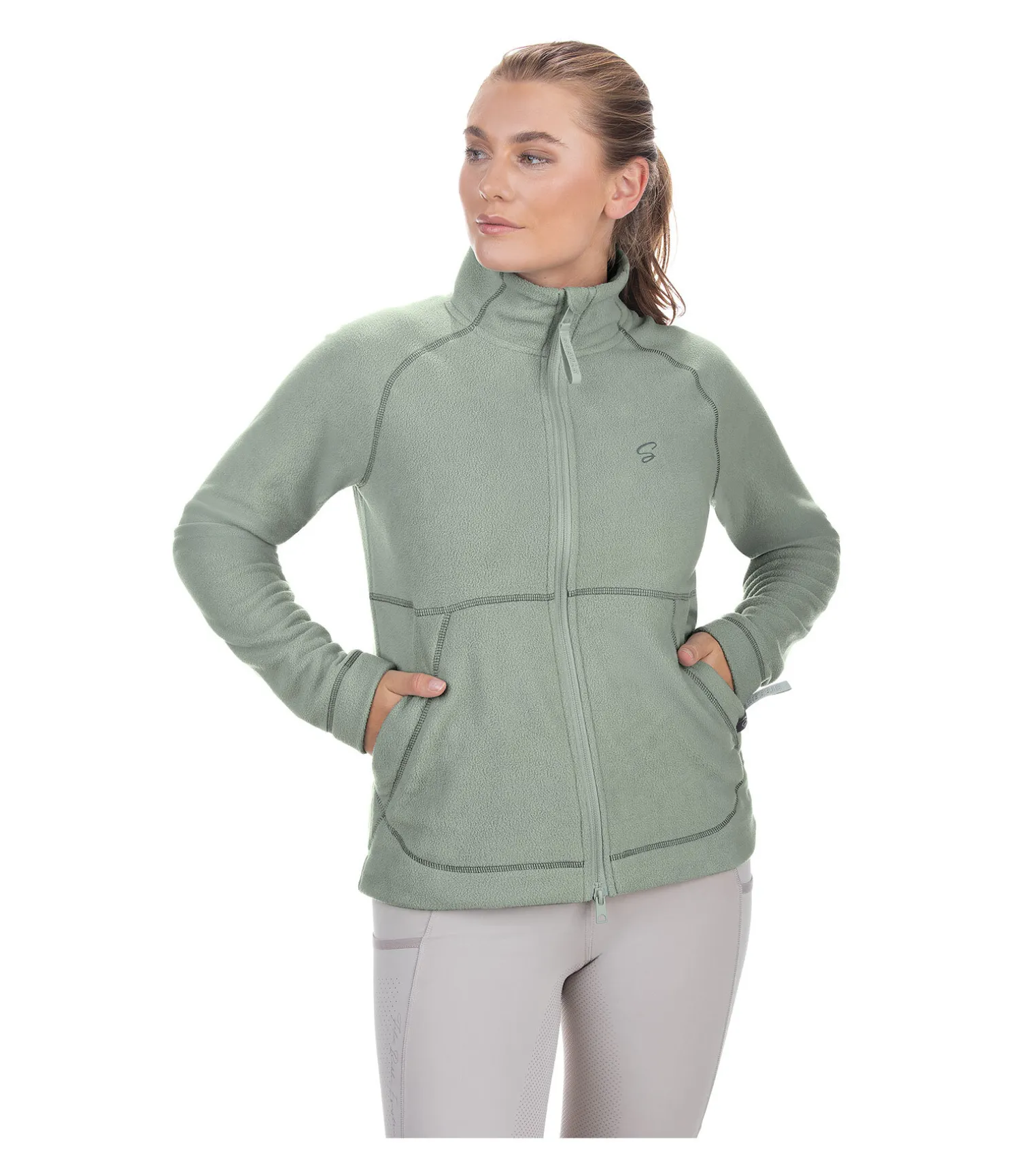 Veste polaire douce et chaude avec col montant. Fermeture à glissière double sens avec sous-patte et protège-menton. Deux poches latérales zippées. Broderie logo discrète sur la poitrine. Traitement anti-bouloches. 100 % polyester.