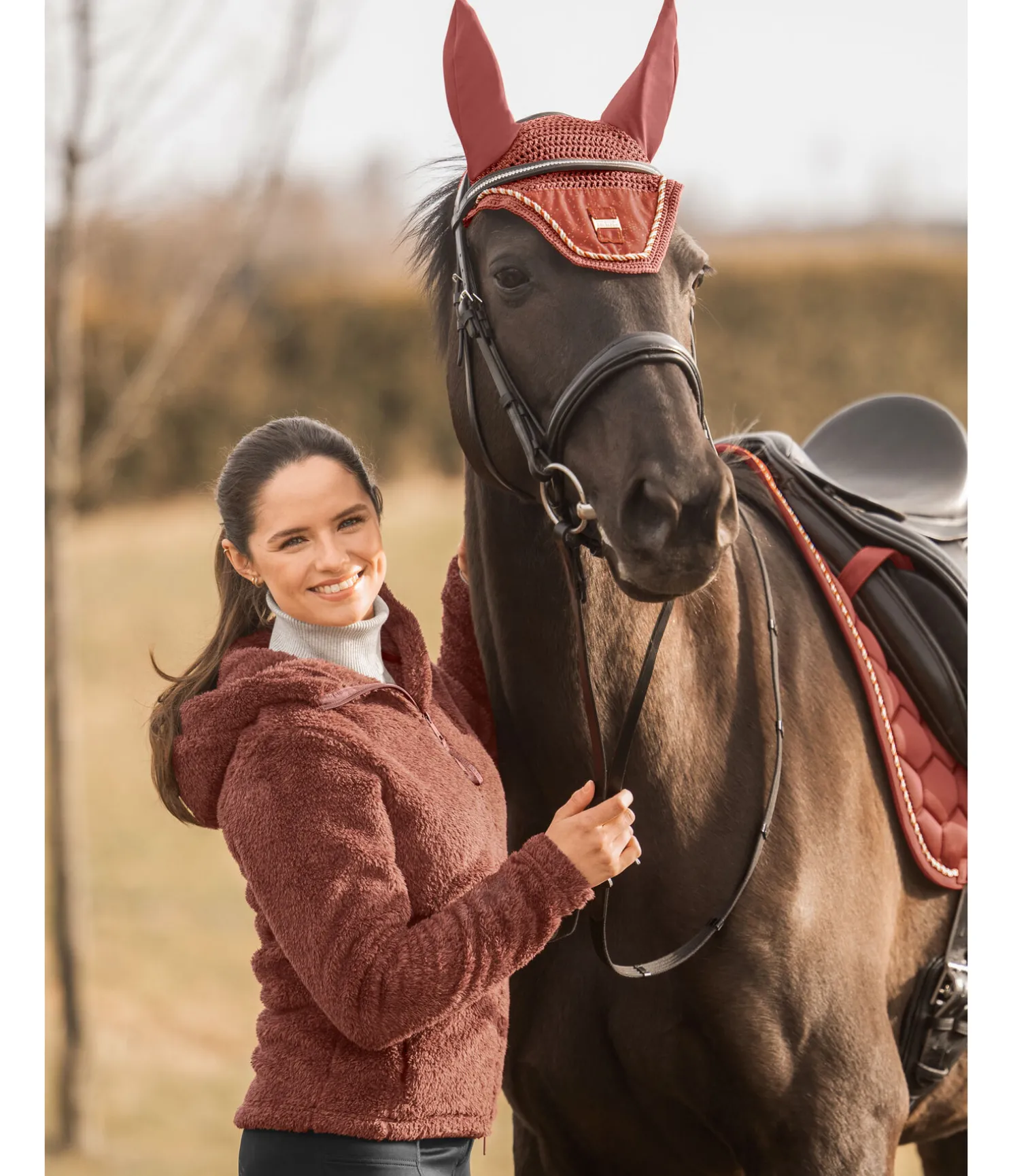 Veste à capuche extra douillette avec aspect peluche. Capuche haute. Extensible. Fermeture à glissière double sens devant. 2 poches zippées devant. Broderie Felix Bühler sur la poitrine. 100 % polyester.