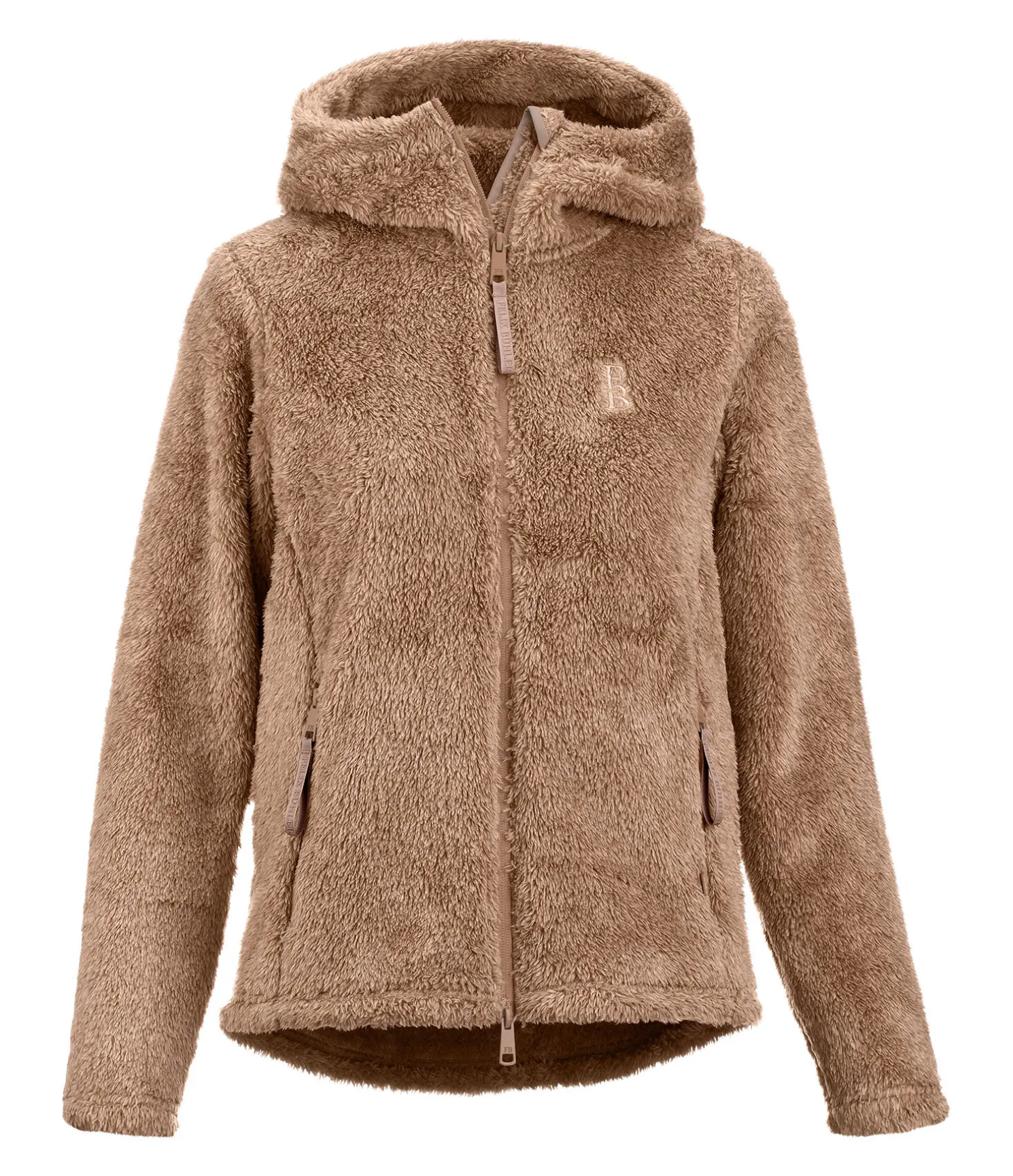 Veste à capuche extra douillette avec aspect peluche. Capuche haute. Extensible. Fermeture à glissière double sens devant. 2 poches zippées devant. Broderie Felix Bühler sur la poitrine. 100 % polyester.