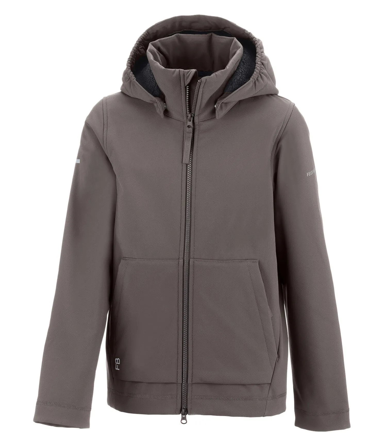 Veste softshell extensible à capuche dans un style sportswear. Coupe décontractée et doublure en polaire Teddy extra-douce. Déperlante, coupe-vent et respirante. Fermeture à glissière double sens, 2 poches avant zippées, capuche amovible, imprimé logo Felix Bühler sur la manche et la poche avant. 94 % polyester, 6 % élasthanne.
