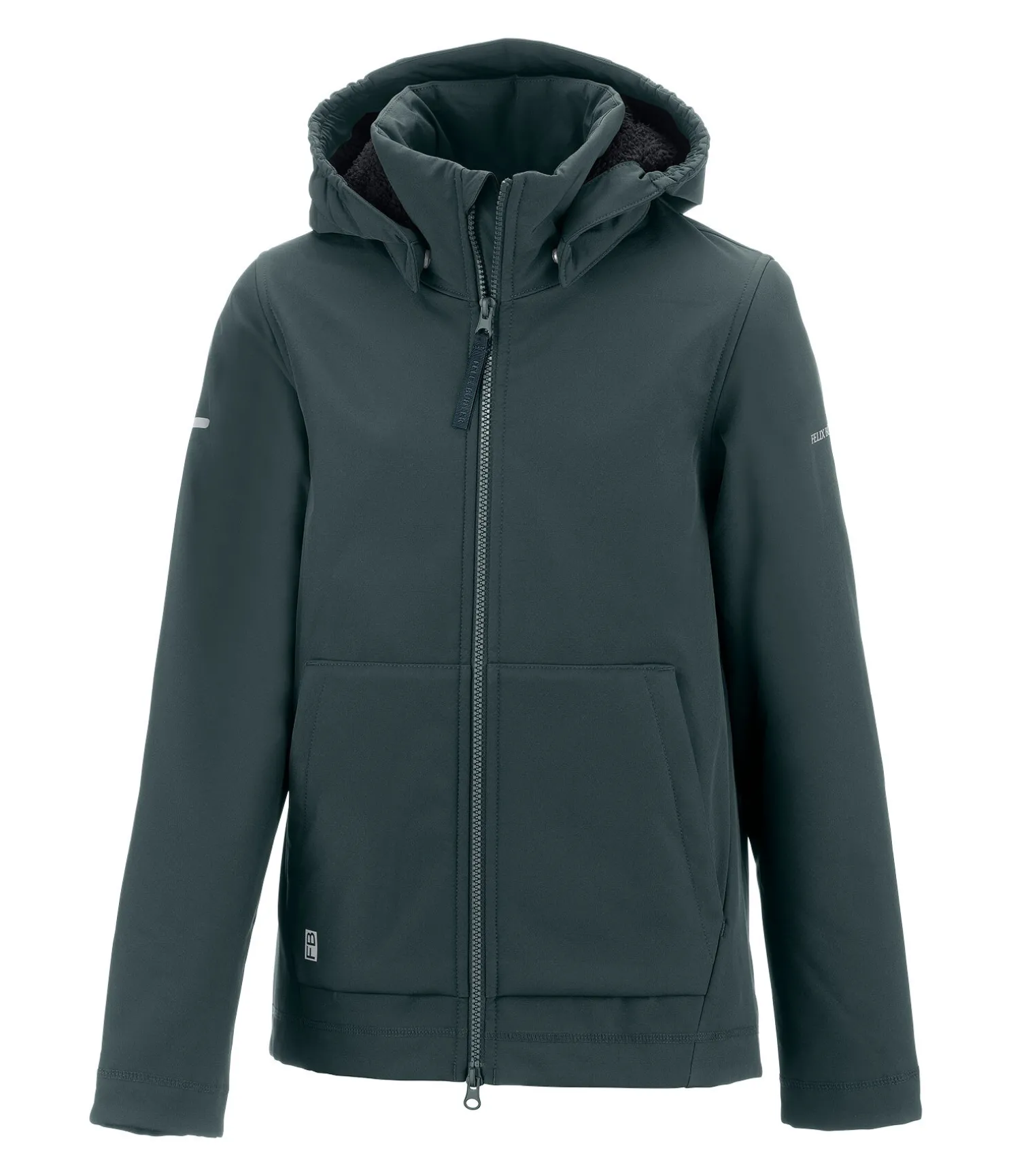 Veste softshell extensible à capuche dans un style sportswear. Coupe décontractée et doublure en polaire Teddy extra-douce. Déperlante, coupe-vent et respirante. Fermeture à glissière double sens, 2 poches avant zippées, capuche amovible, imprimé logo Felix Bühler sur la manche et la poche avant. 94 % polyester, 6 % élasthanne.