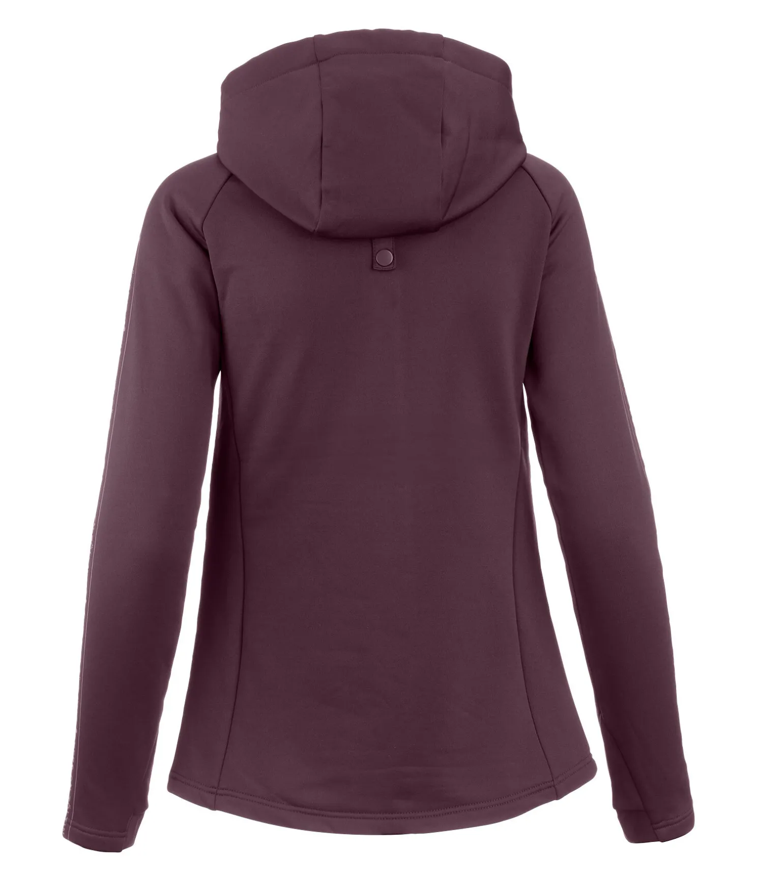 Veste à capuche technique et respirante avec intérieur doux. À séchage rapide. Fermeture à glissière double sens dissimulée, 2 poches zippées, capuche réglable par cordons de serrage et pouvant être fixée dans le dos. Avec inscription sur les manches et passe-pouce intégré. 93 % polyester, 7 % élasthanne.
