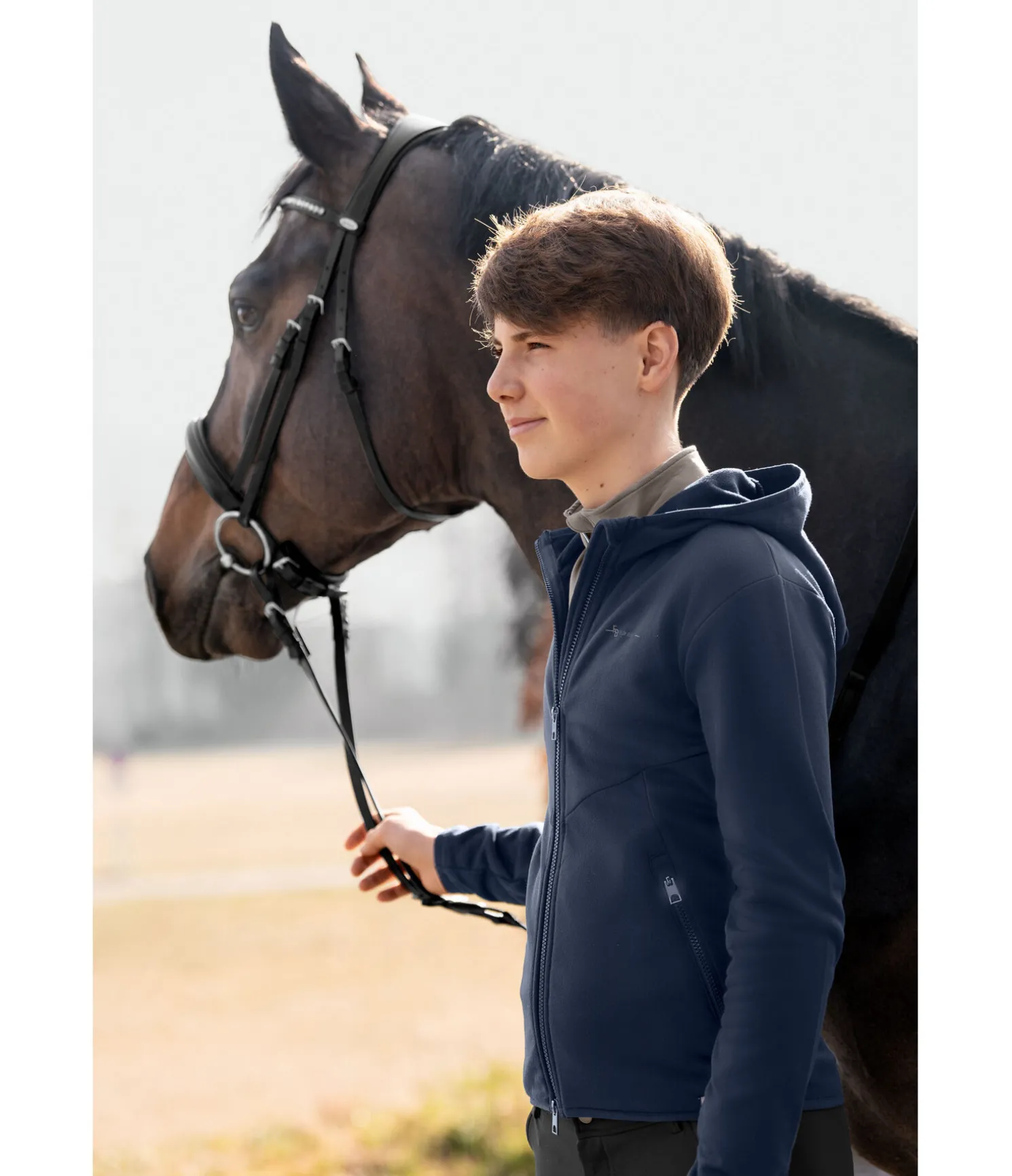 Veste à capuche sportswear en stretch Performance pour enfant. Respirante et à séchage rapide. Intérieur doux, fermeture à glissière double sens avec protège-menton, 2 poches zippées. Capuche, taille et bas des manches élastiqués. Logo Felix Bühler sur la poitrine. 95 % polyester, 4 % élasthanne.