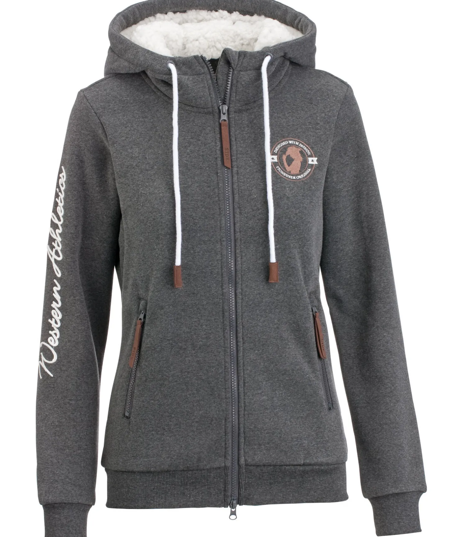 Veste sweat à capuche confortable et légèrement doublée avec cordon de serrage. Poignets et bas de veste en matière côtelée. 2 poches avant zippées. Fermeture à glissière double sens. Superbe broderie sur le bras. 100 % polyester.